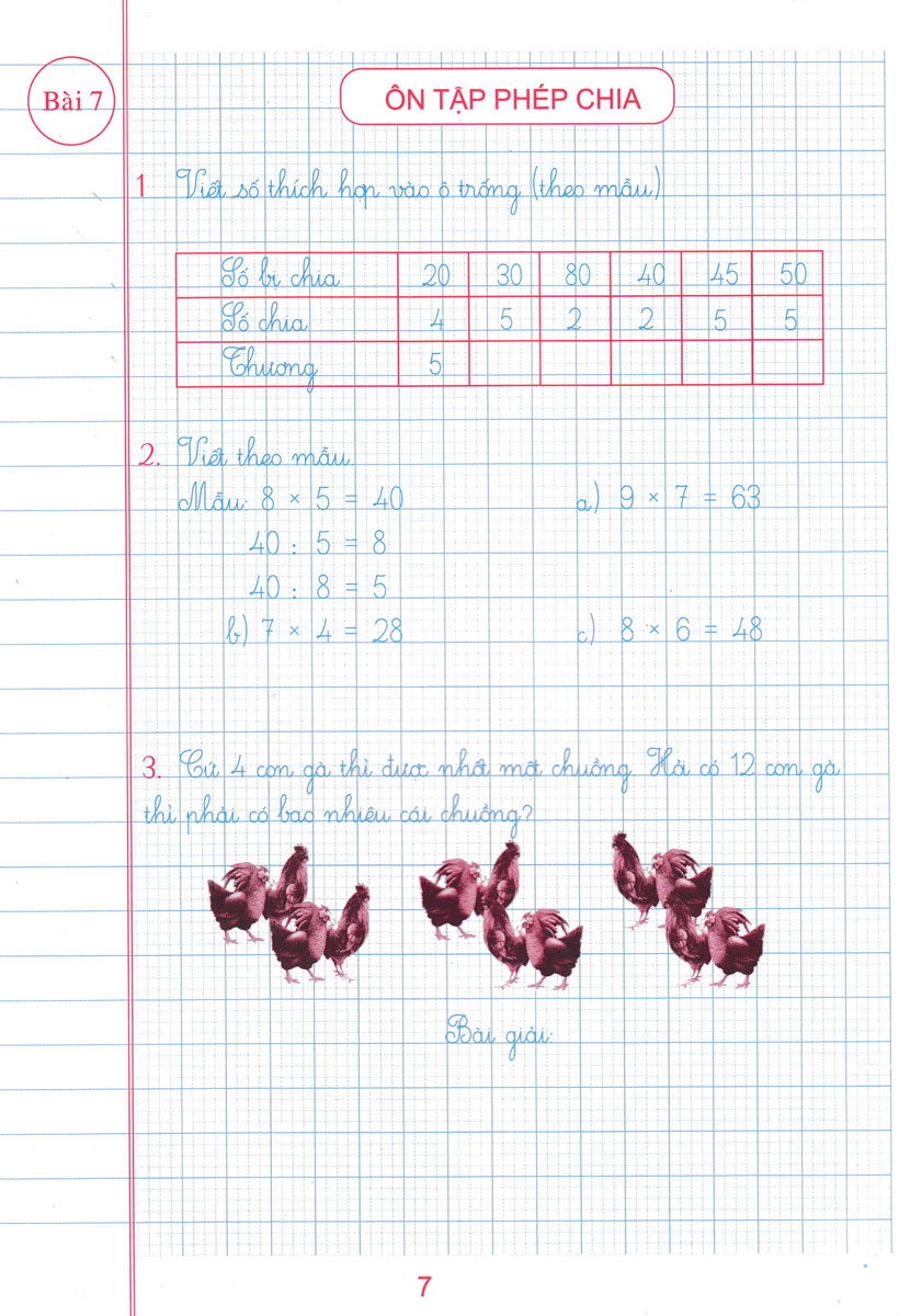 VỞ Ô LI BÀI TẬP TOÁN LỚP 3 Quyển 1 - BÀI 7 LUYỆN TẬP Trang 7