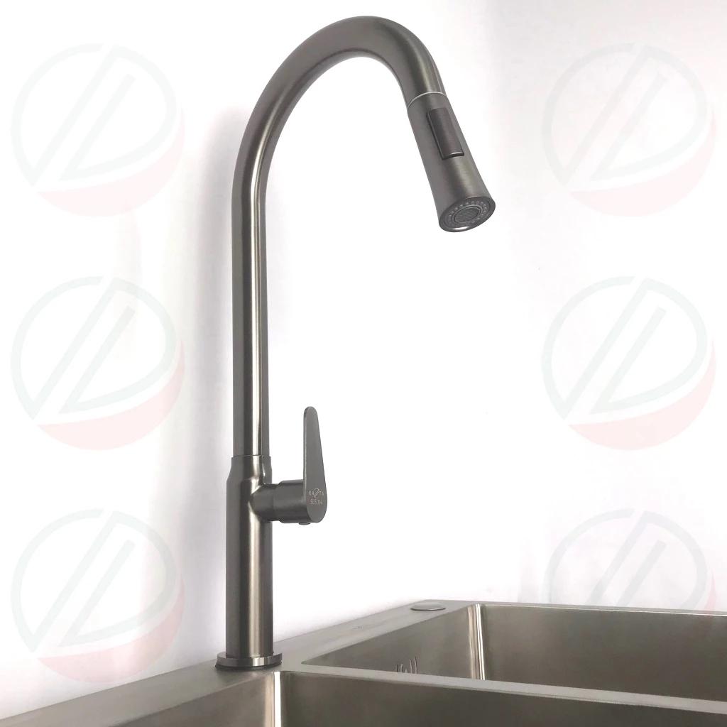Chất liệu: Inox 304 Thiết kế 2 đường nước nóng lạnh Đầu vòi rửa có thể kéo dài Đầu vòi tạo bọt, giúp tiết kiệm nước và hạn chế bắn nước khi sử dụng Vòi