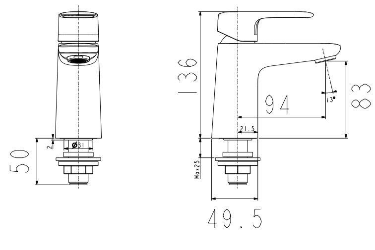 - Chiều cao vòi : 136mm