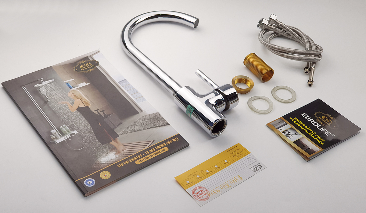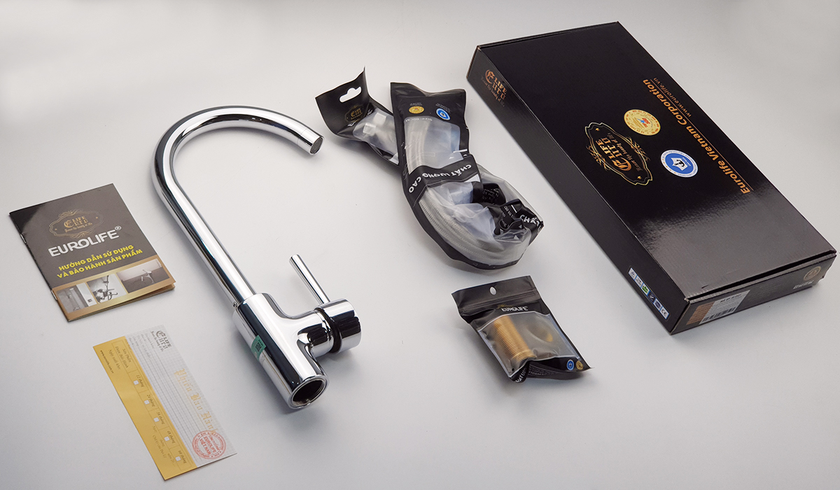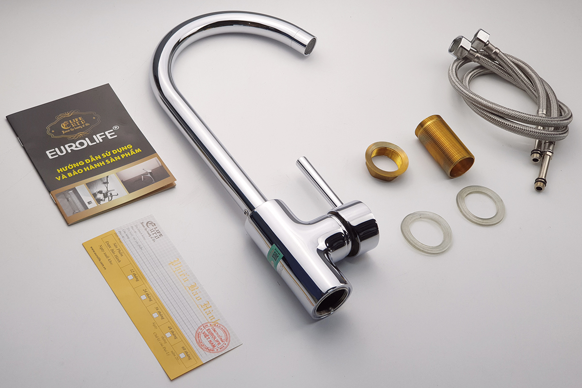 Vòi rửa chén nóng lạnh Đồng mạ Chrome Eurolife EL-KM01 (Trắng bạc) * Hãng sản xuất : Eurolife Việt Nam * Chất liệu : Sản phẩm được đúc trọng lực bằng hợp kim đồng 61%,