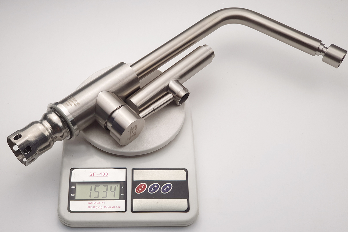 Thân vòi được thiết kế với hình trụ tròn, uyển chuyển nhưng mạnh mẽ. Đường kính thân lớn tới 45mm, giúp vòi cứng cáp và chắc chắn hơn.