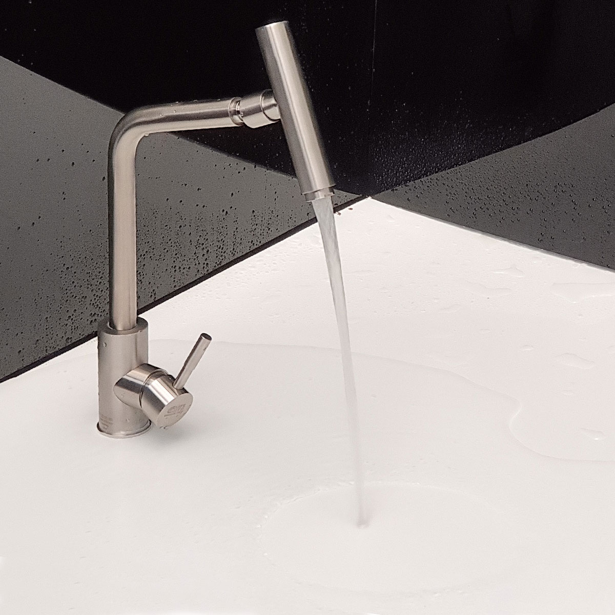 Thông số kỹ thuật: Chất liệu: Đá GRANITE Thiết kế 2 đường nước nóng – lạnh Màu sắc: Đen Bộ lọc tạo bọt, chống bắn nước Thân vòi có thể xoay 360 độ, dễ dàng