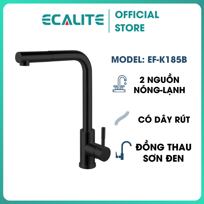 ✨Vòi Rửa Chén Nóng Lạnh Pull-down Ecalite EF-K185B - Có Dây Rút - Đồng Thau Sơn Đen Cực Đẹp - Hàng Chính Hãng