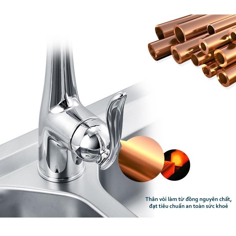 Hãy cảm nhận sự khác biệt đến từ sự bền bỉ của chất liệu đồng nguyên chất cùng lớp mạ Crom làm bóng, sự êm ái khi đóng/mở nước, sự thoải mái khi sử dụng và sự tiện lợi mà chiếc vòi mang lại giúp bạn tiết kiệm thời gian và công sức cho việc rửa dọn.