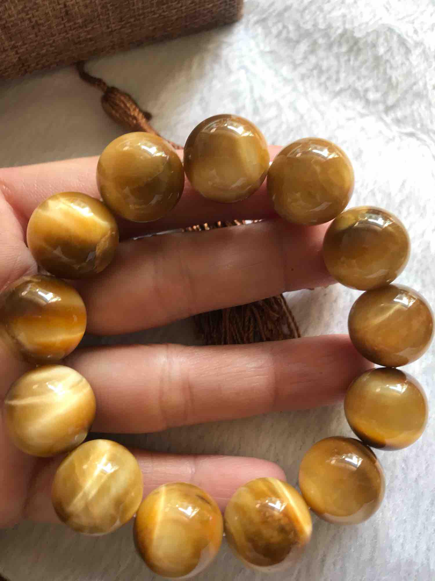 Vòng Nam Lu Thống Mới Vàng Nâu bóng đẹp đá mắt hổ tự nhiên vàng nâu hạt 14mm dài 19mm Shop Sunny Q8