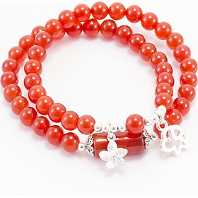 Vòng 2 Line Đá Mã Não Đỏ Phối Charm Bạc (6mm) Ngọc Quý Gemstones Phù hợp với người Mệnh Hỏa – Mệnh Thổ