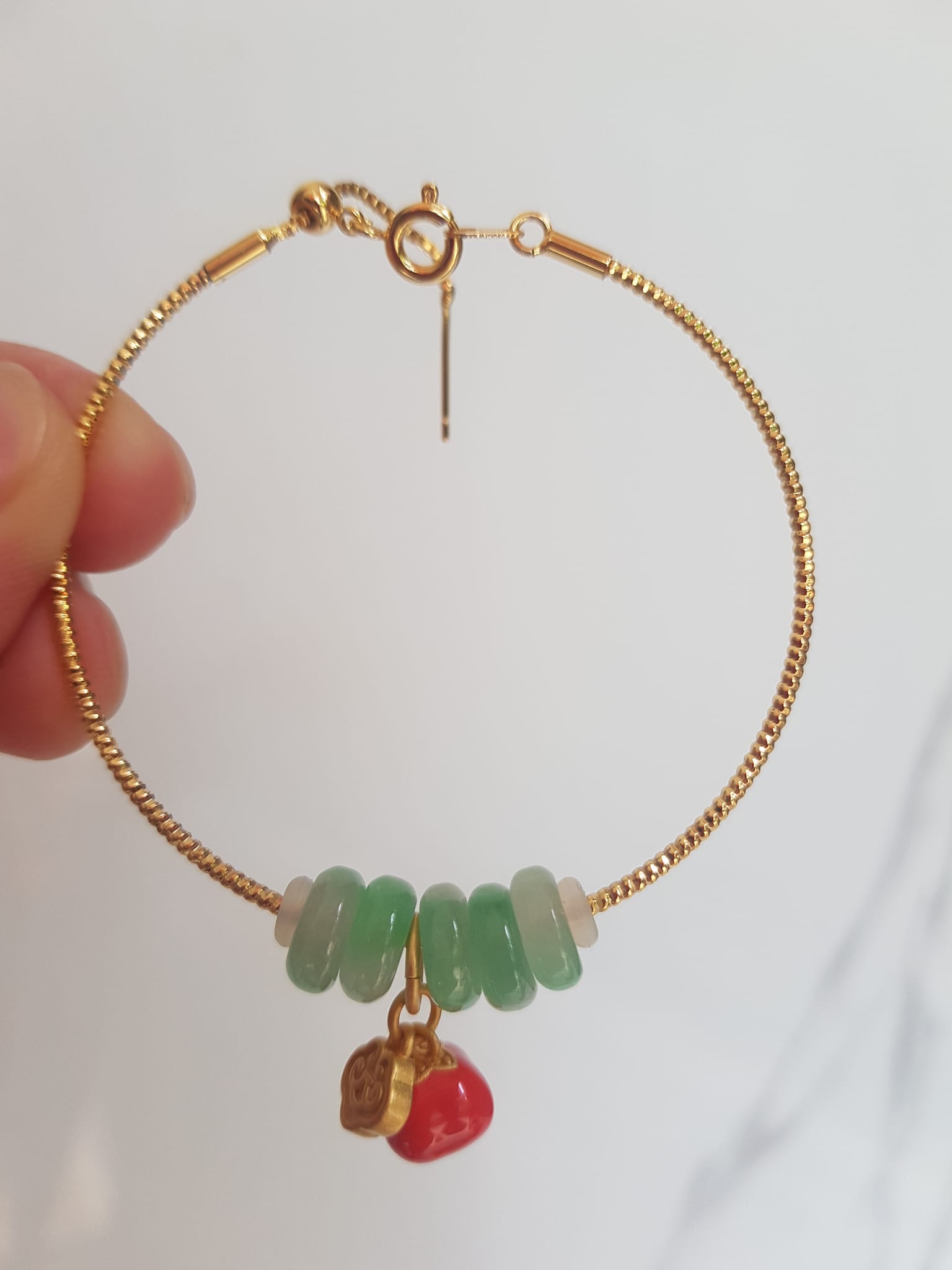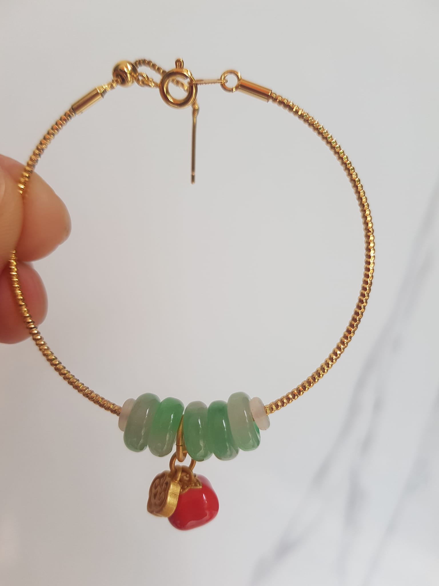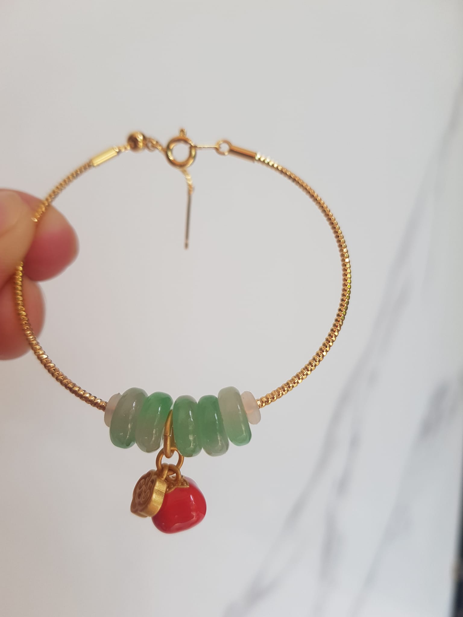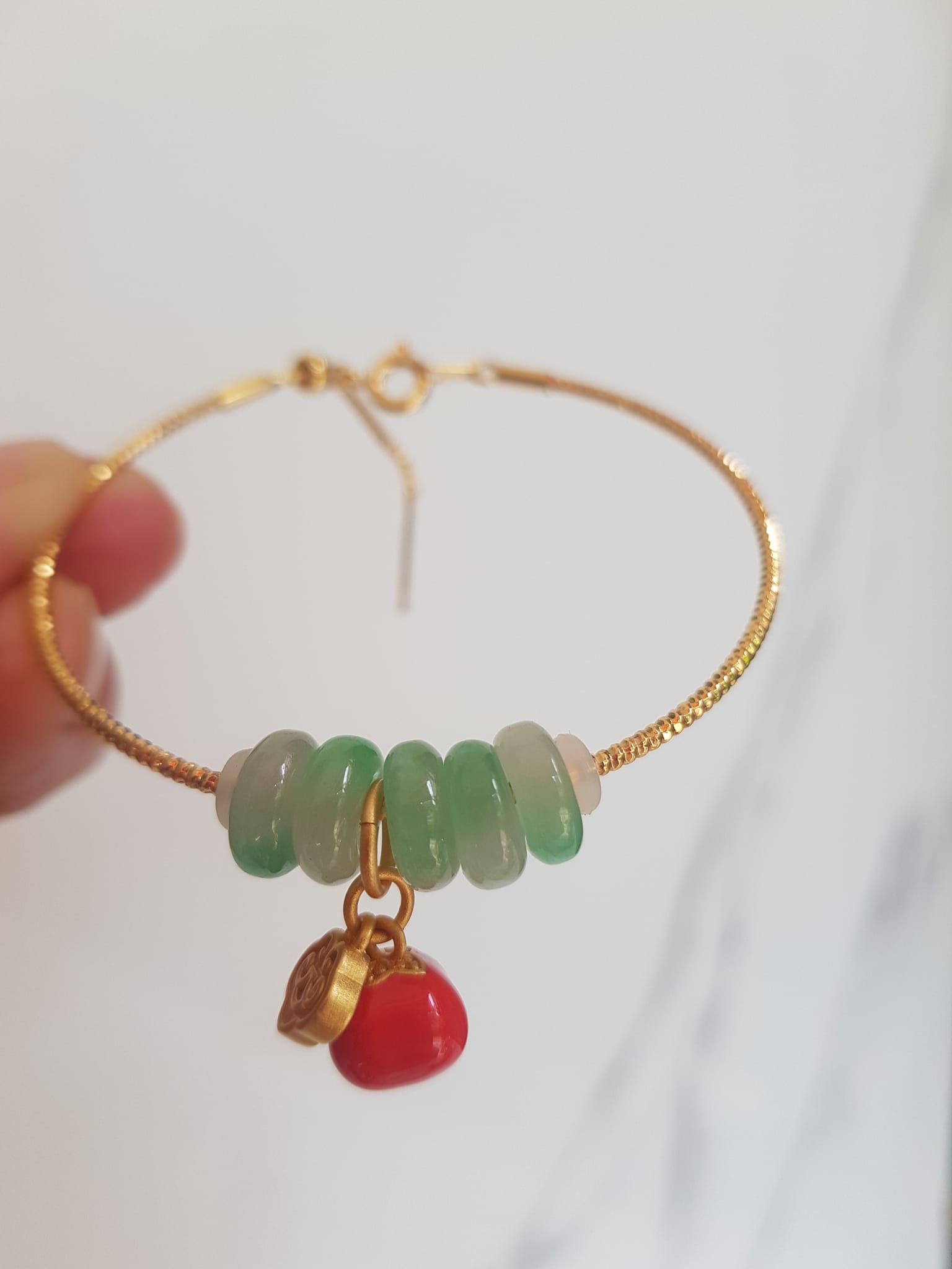 ✨Vòng charm kiểu 5 đồng điếu đá cẩm thạch A Trắng Xanh lý bóng đẹp phối phụ kiện vàng charm trái táo đỏ kiểu may mắn dây vàng kiểu khóa rút đẹp vừa xinh xắn vừa đẹp may mắn tài lộc ạ