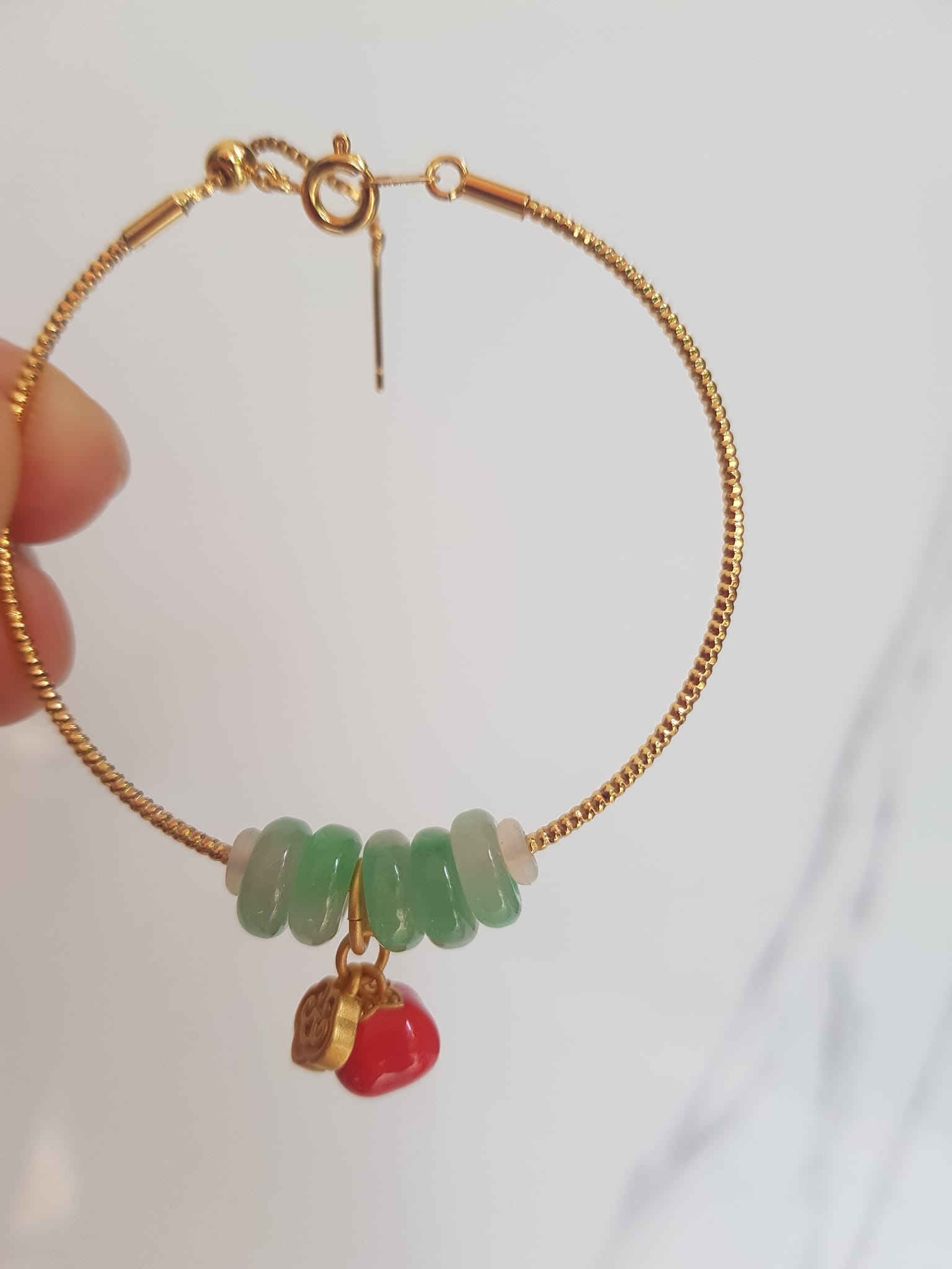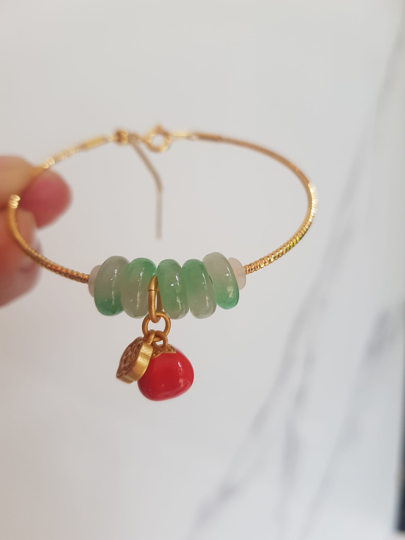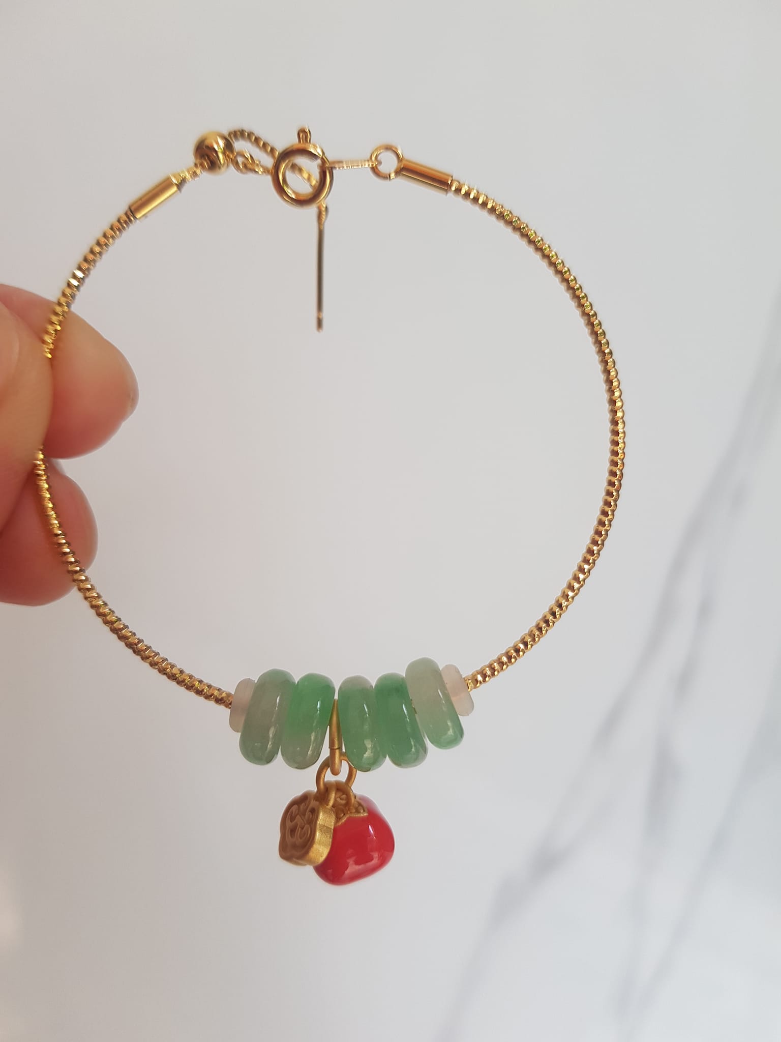 ✨Vòng charm kiểu 5 đồng điếu đá cẩm thạch A Trắng Xanh lý bóng đẹp phối phụ kiện vàng charm trái táo đỏ kiểu may mắn dây vàng kiểu khóa rút đẹp vừa xinh xắn vừa đẹp may mắn tài lộc ạ