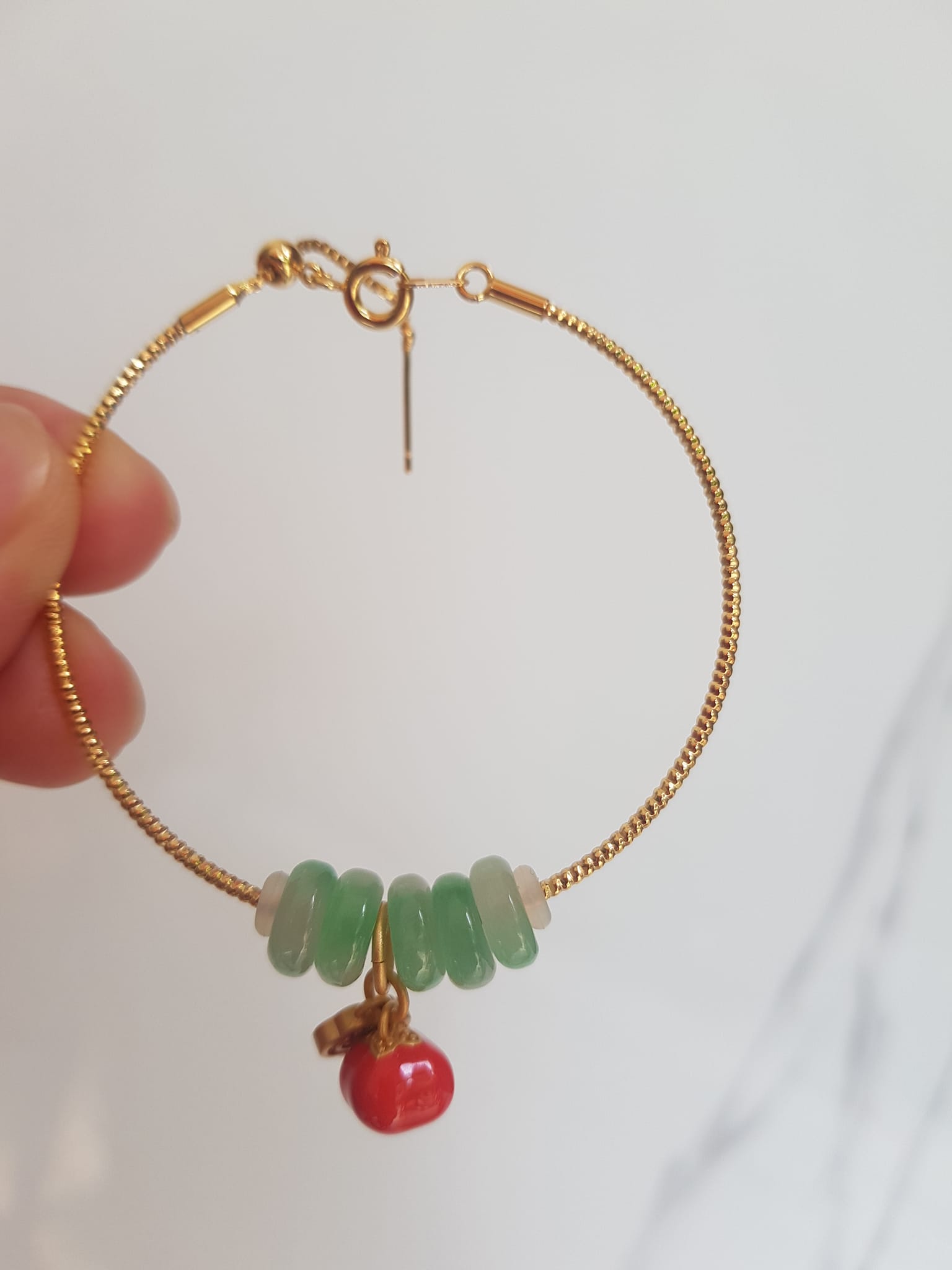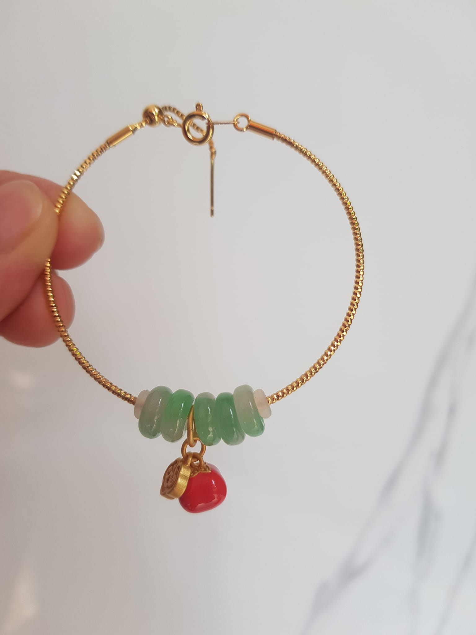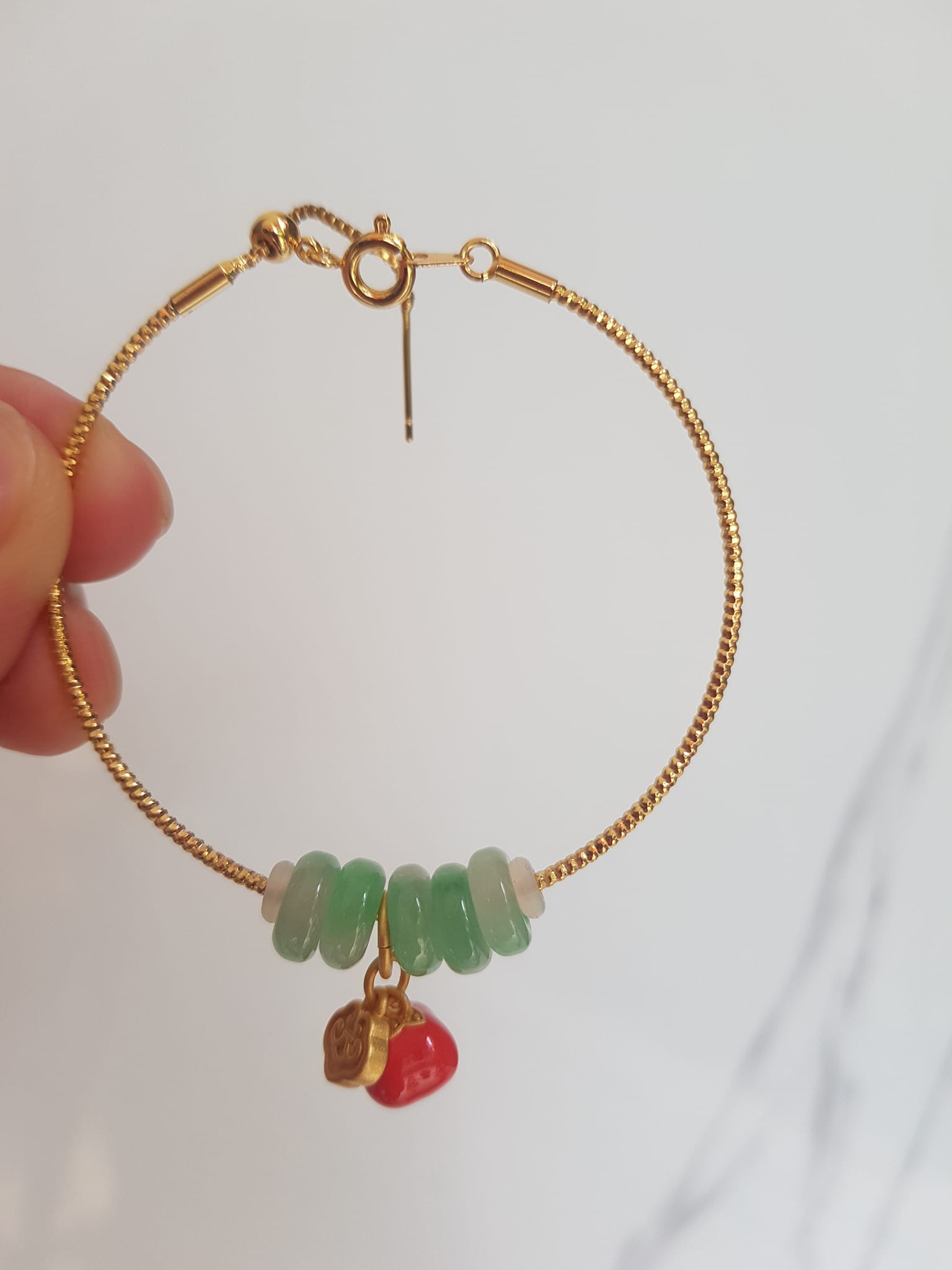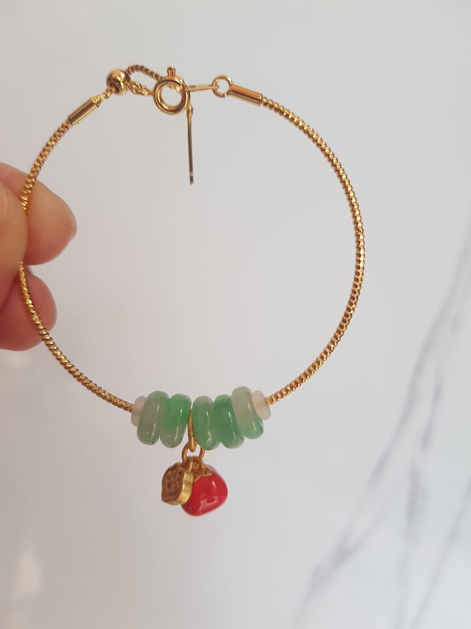 ✨Vòng charm kiểu 5 đồng điếu đá cẩm thạch A Trắng Xanh lý bóng đẹp phối phụ kiện vàng charm trái táo đỏ kiểu may mắn dây vàng kiểu khóa rút đẹp vừa xinh xắn vừa đẹp may mắn tài lộc ạ