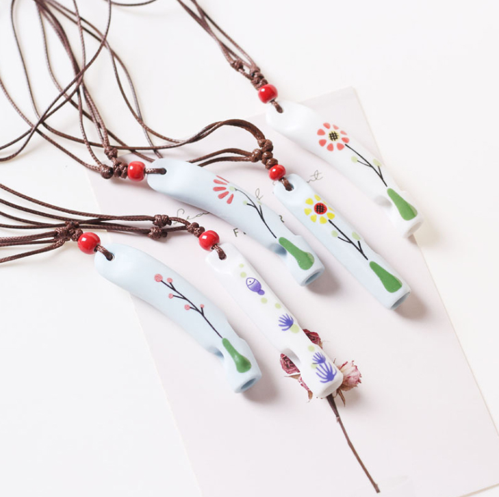 ✨Vòng cổ gốm truyền thống còi vẽ hoa giao mầu ngẫu nhiên