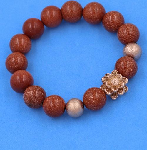 ✨Vòng đeo tay Đá Kim Sa Nâu 12 ly - Vòng Hoa Sen vàng hồng phối 2 bi - hợp mệnh Kim, mệnh Thổ