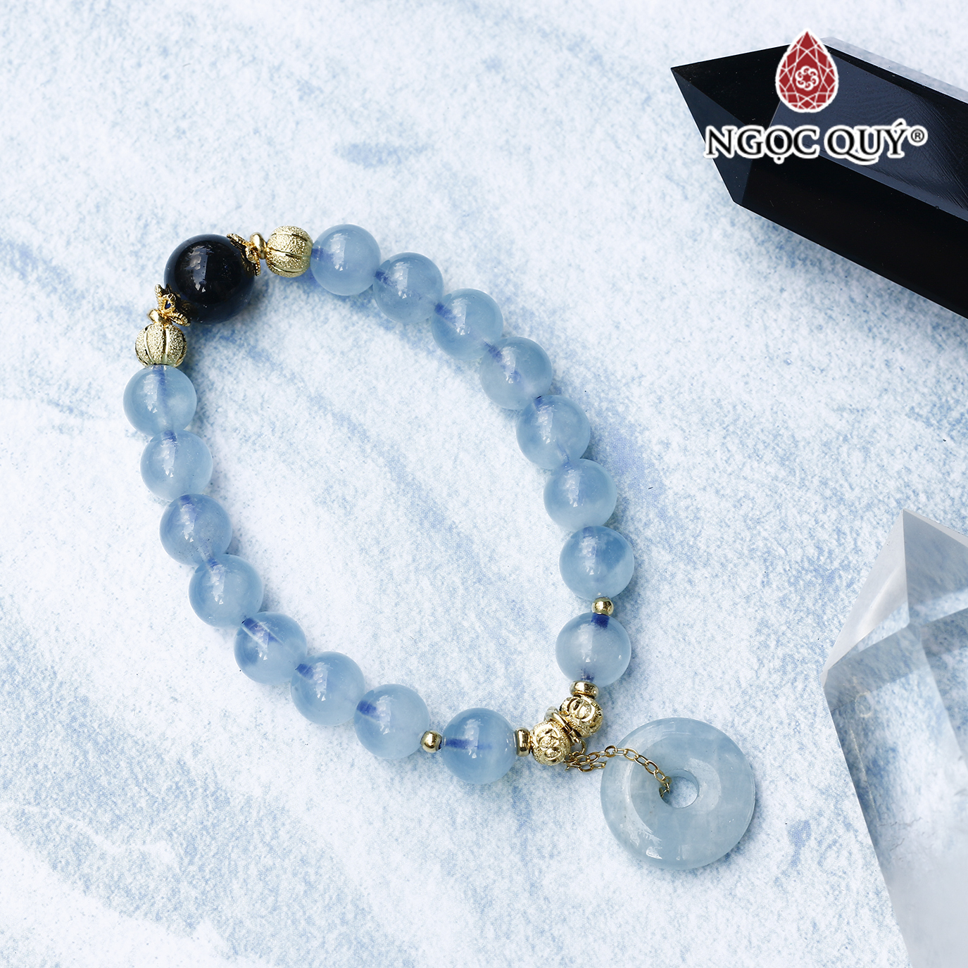 VÒNG TAY ĐÁ AQUAMARINE : Aquarmarine là một loại đá thuộc họ Beryl, sở hữu màu xanh tuyệt đẹp của biển cả, là món quà mà nàng tiên cá dành tặng cho các thủy thủ