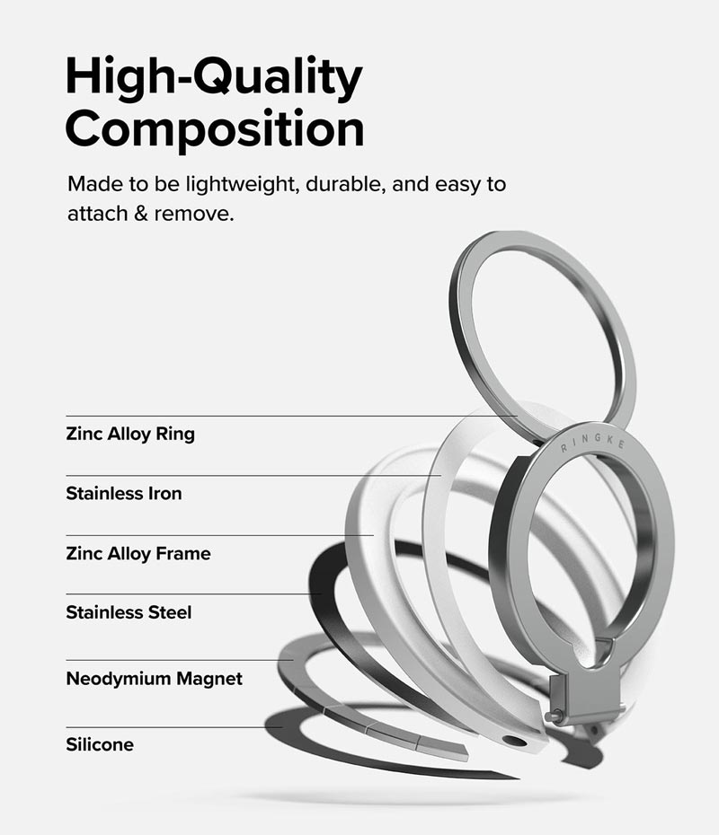 - Tương thích với các thiết bị điện thoại có tính năng từ tính. Lưu ý: sản phẩm chỉ là vòng từ tính, không bao gồm ốp lưng hoặc các phụ kiện nào khác. Hình ảnh chỉ minh họa tính năng của sản phẩm. GIỚI THIỆU RINGKE Ringke là thương hiệu nổi tiếng trong lĩnh vực công nghệ được thành lập từ năm 2003. Là thương hiệu đến từ Hàn Quốc với tiêu chuẩn chất lượng và độ hoàn thiện cực kỳ tốt. Các sản phẩm của Ringke thường được khách hàng đánh giá cao bởi triết lý “Live A Better Day”, nhờ vậy các sản phẩm của Ringke hướng đến giải quyết những vấn đề thường ngày của khách hàng nhằm mang đến sự tiện dụng và thoải mái nhất. MỘT SỐ LƯU Ý KHI SỬ DỤNG SẢN PHẨM NÀY
