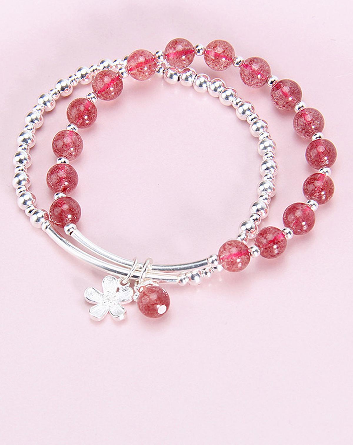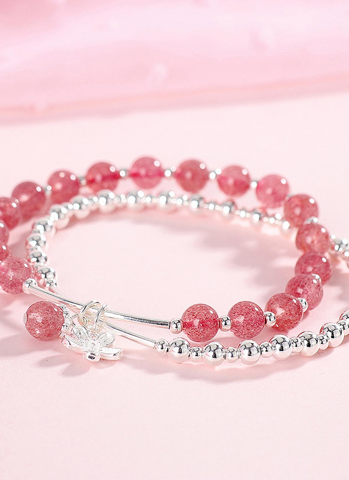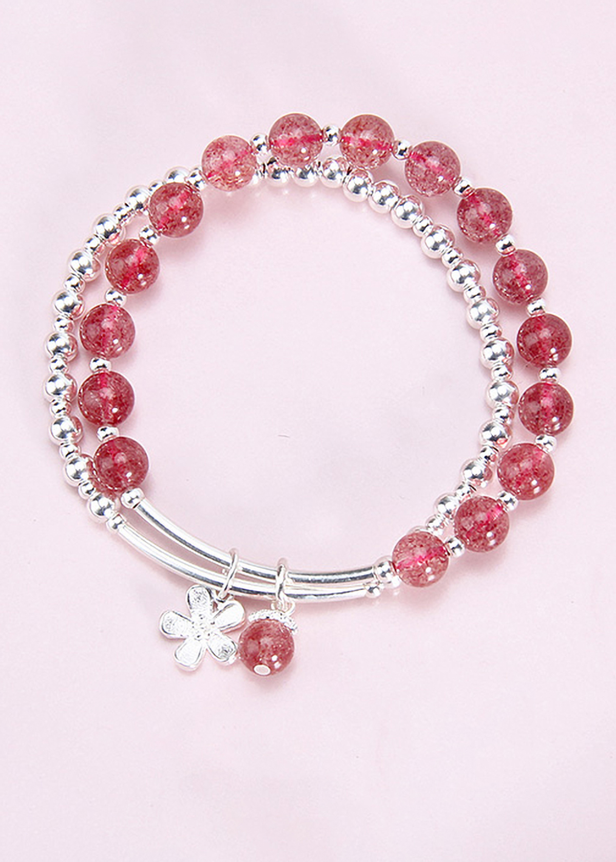 ✨Vòng tay 2 line đá thạch anh dâu phối charm hoa bạc mệnh hỏa, thổ - Ngọc Quý Gemstones