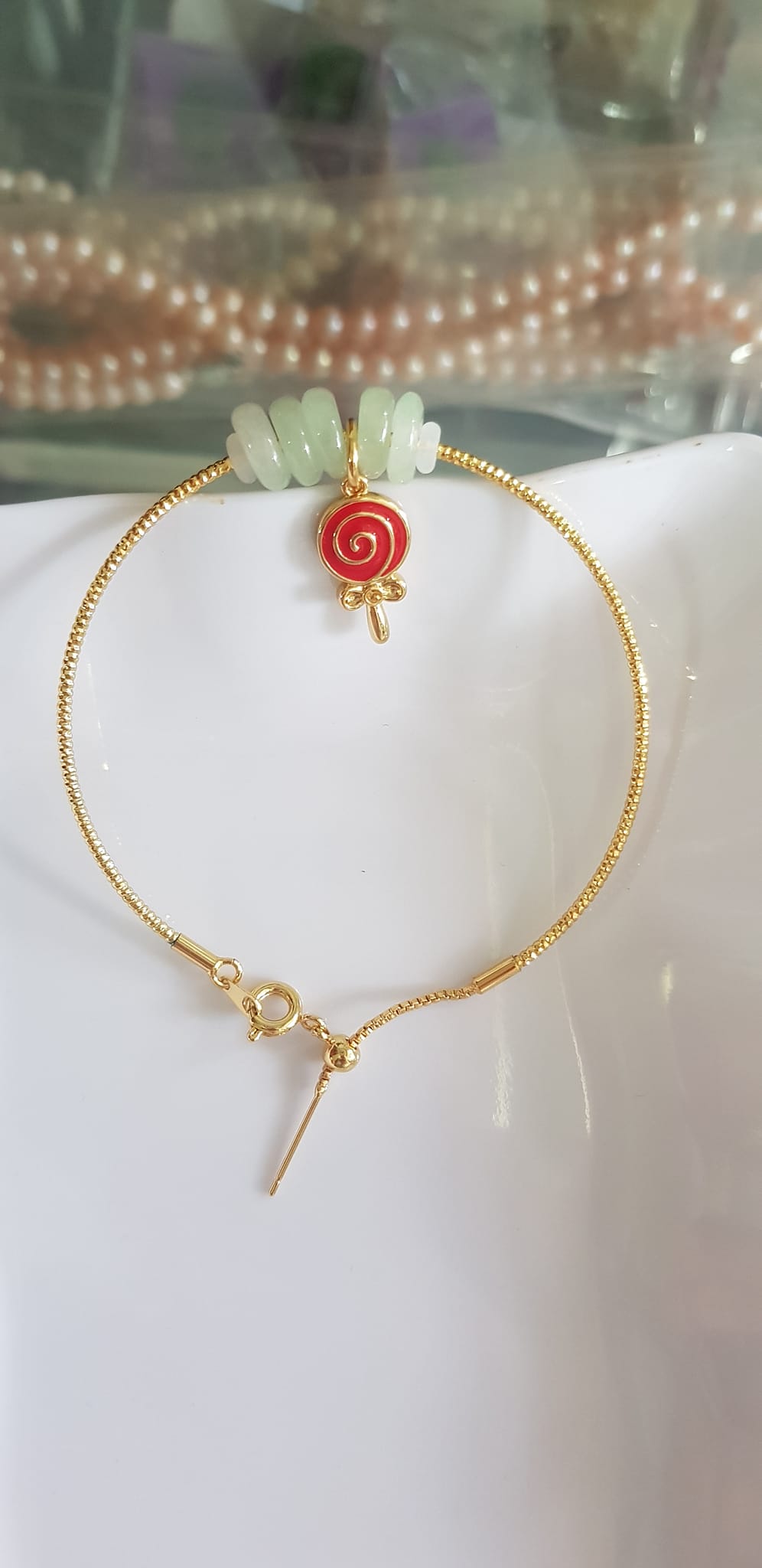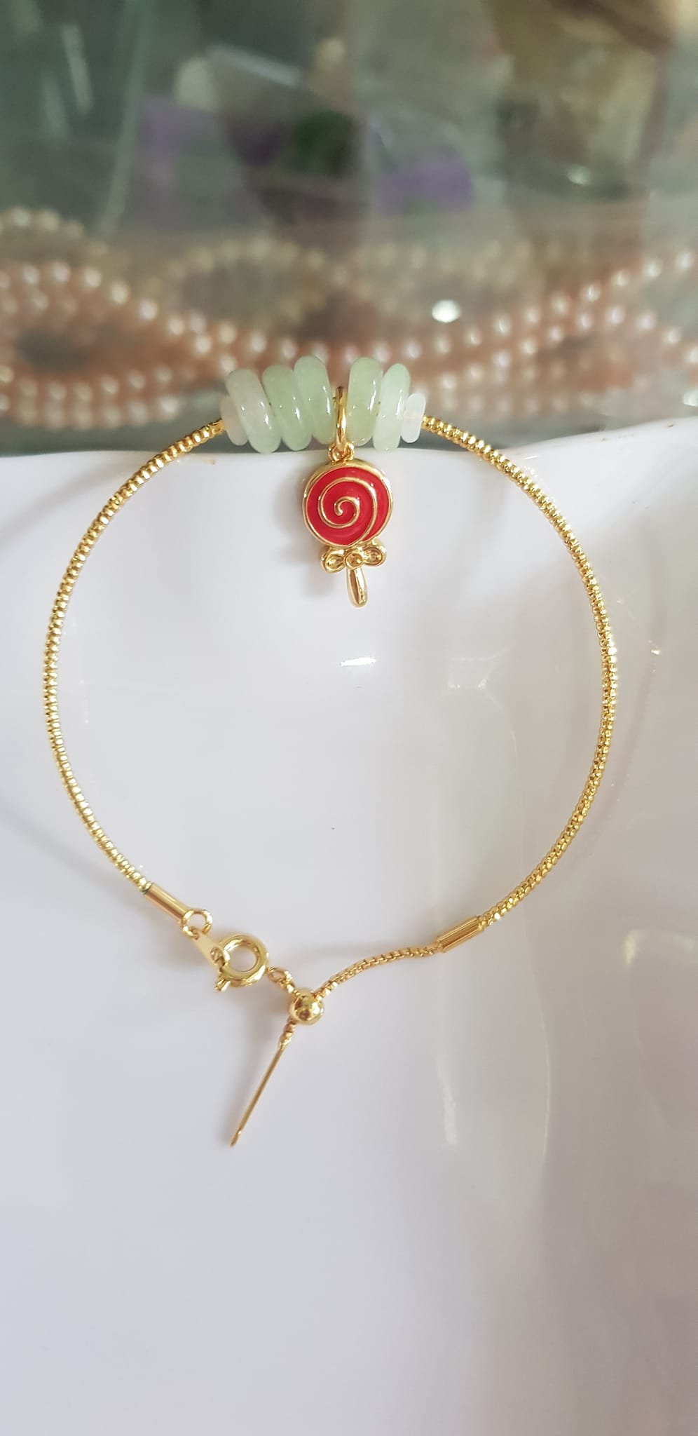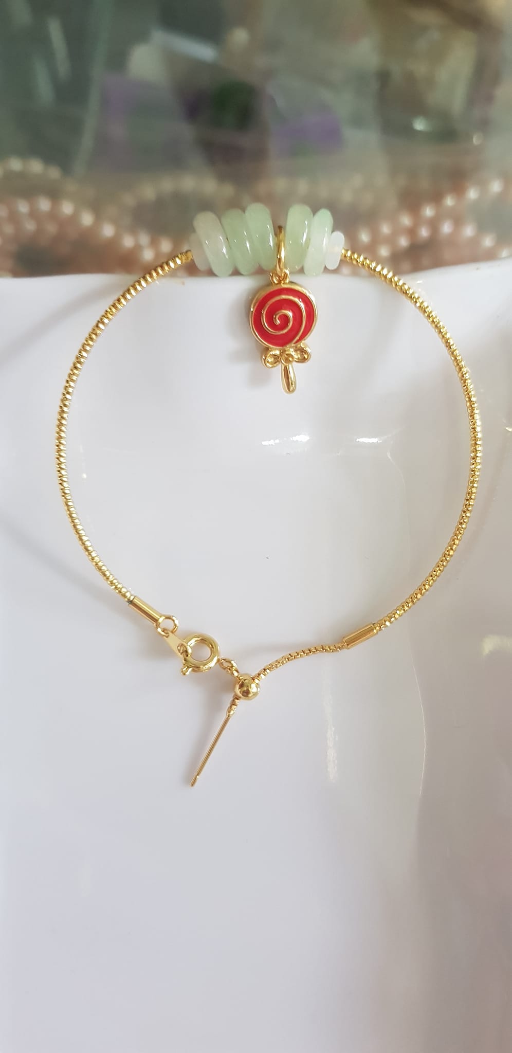 Vòng Tay charm xinh đẹp 5 đồng tiền đá cẩm thạch tự nhiên Đồng tiền Trắng Xanh nhẹ phối charm đỏ kiểu tròn may mắn Vòng màu vàng khoen rút xinh Nữ đeo dễ thương