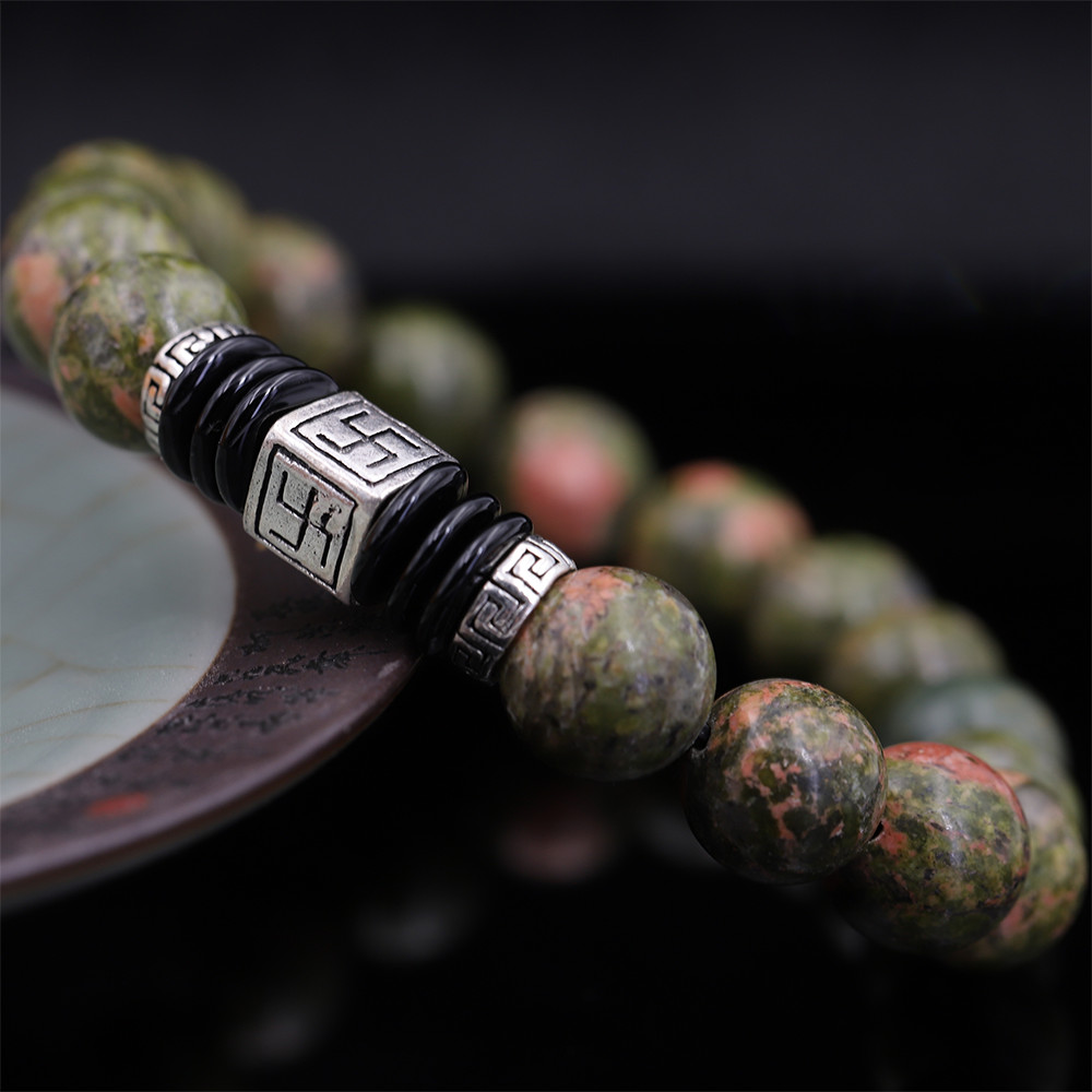 Hiện đại và Cổ điển  卐 Vòng tay Đá quý- chữ Vạn Bình an 卐