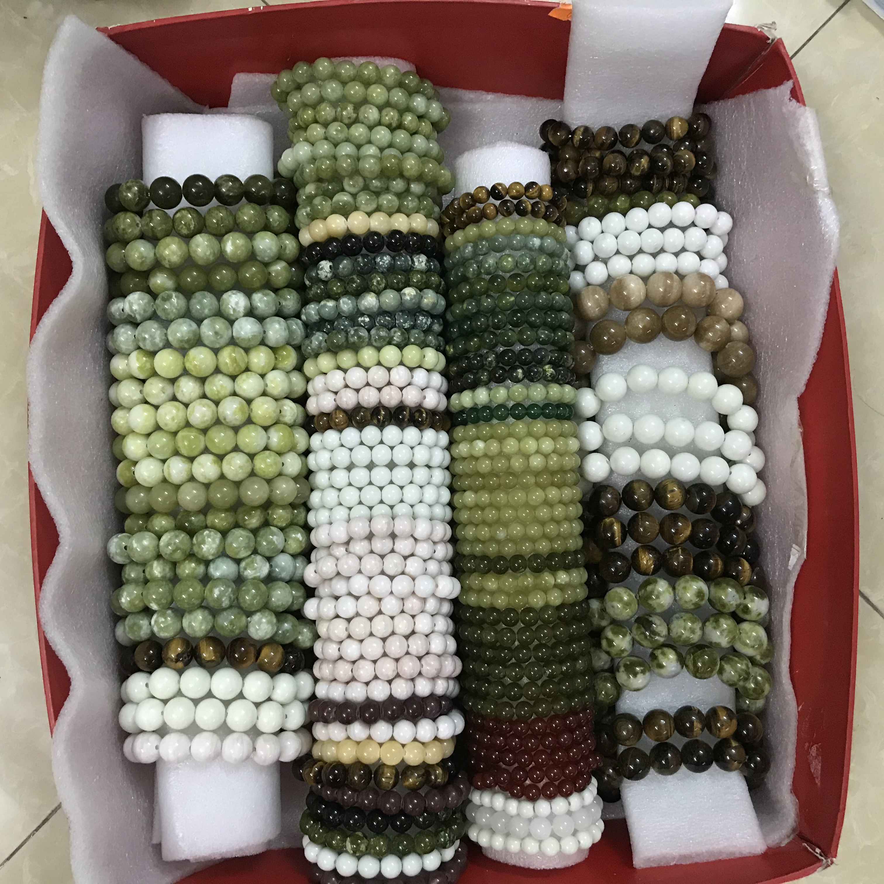 VÒNG TAY CHUỖI HẠT CẨM THẠCH ĐỦ CÁC MÀU PHÙ HỢP CHO TẤT CẢ CÁC MỆNH 1. Tên gọi: Vòng tay chuỗi hạt. Li vòng là 10 li (1cm) 2. Chất đá: Đá ngọc serpentine