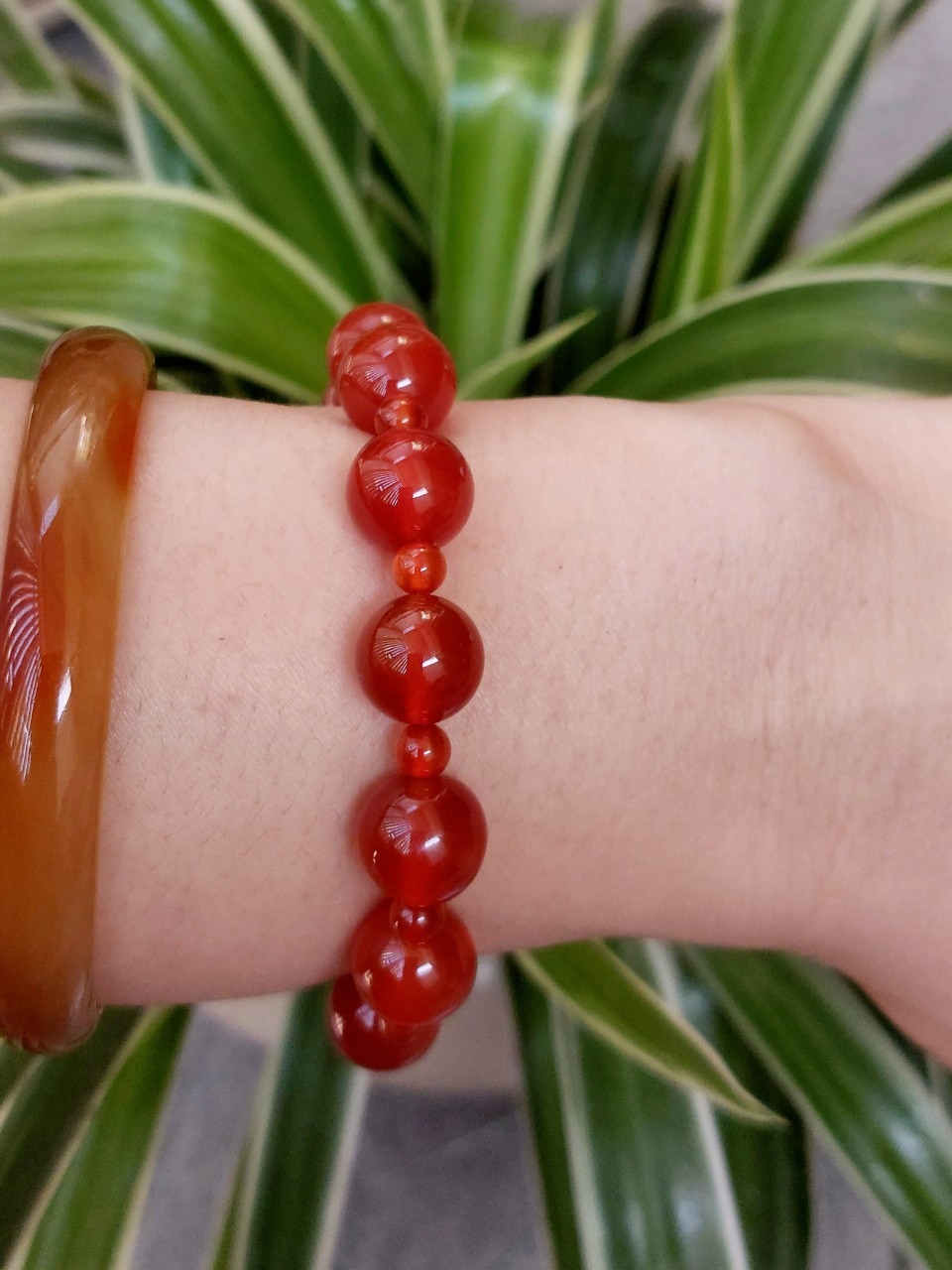 Vòng tay phong thủy Mã Não đỏ 6mm + 3 lu ngọc by ANQLO được chế tác 100% từ đá mã não tự nhiên, Đá mã não có tác dụng giảm căng thẳng, lo lắng,