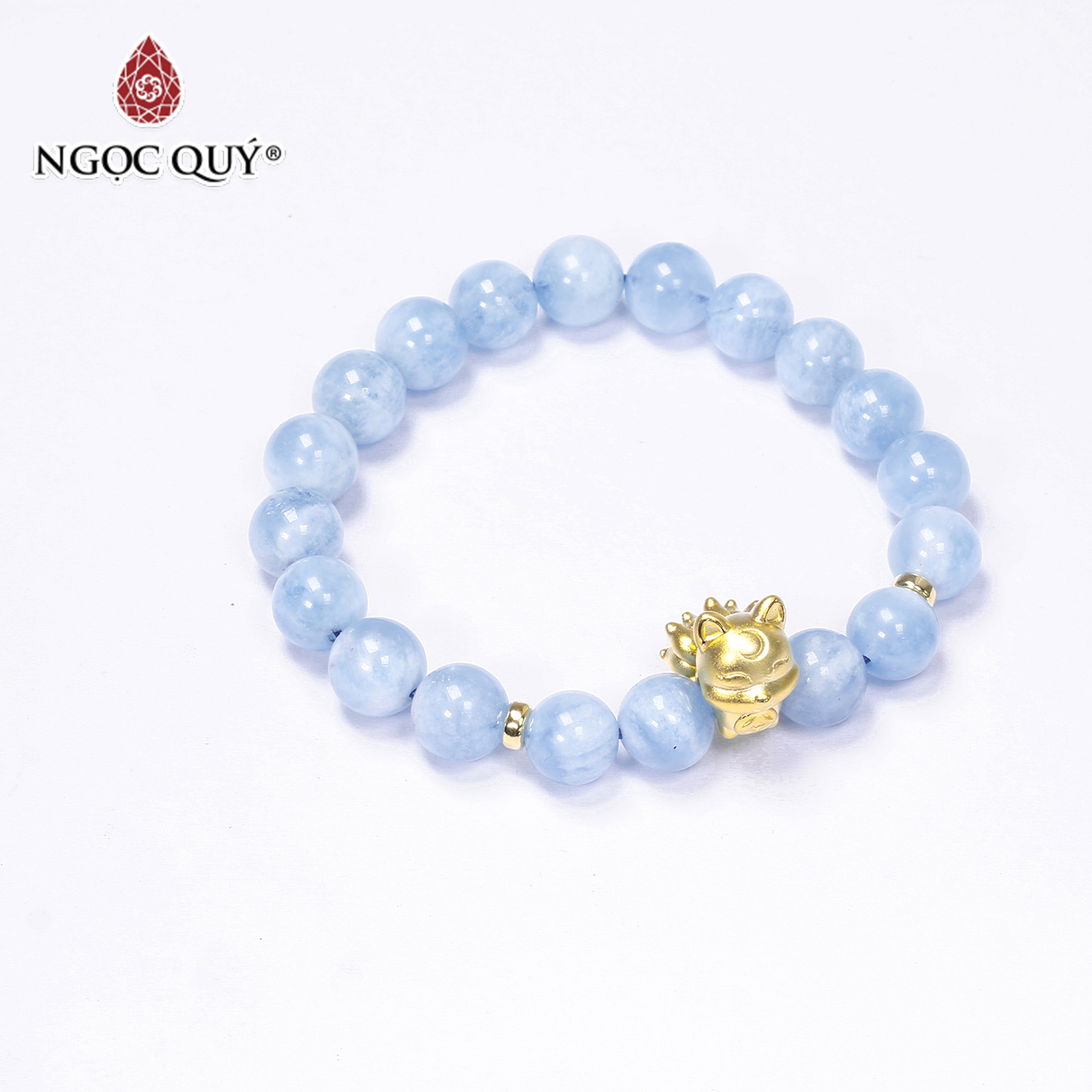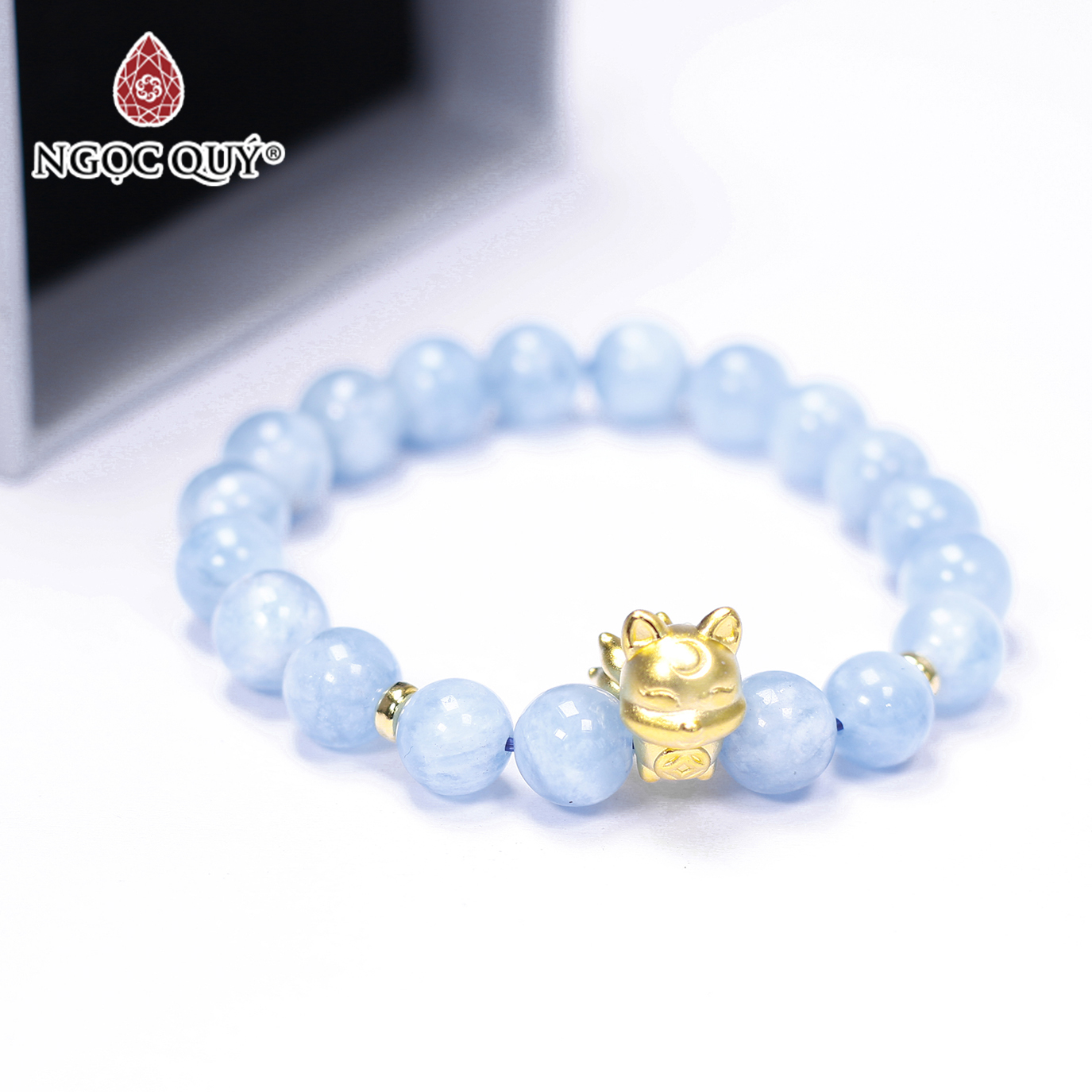 VÒNG TAY ĐÁ AQUAMARINE PHỐI CHARM MÈO BẠC: Aquarmarine là một loại đá thuộc họ Beryl, sở hữu màu xanh tuyệt đẹp của biển cả, là món quà mà nàng tiên cá dành tặng cho