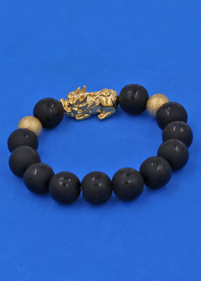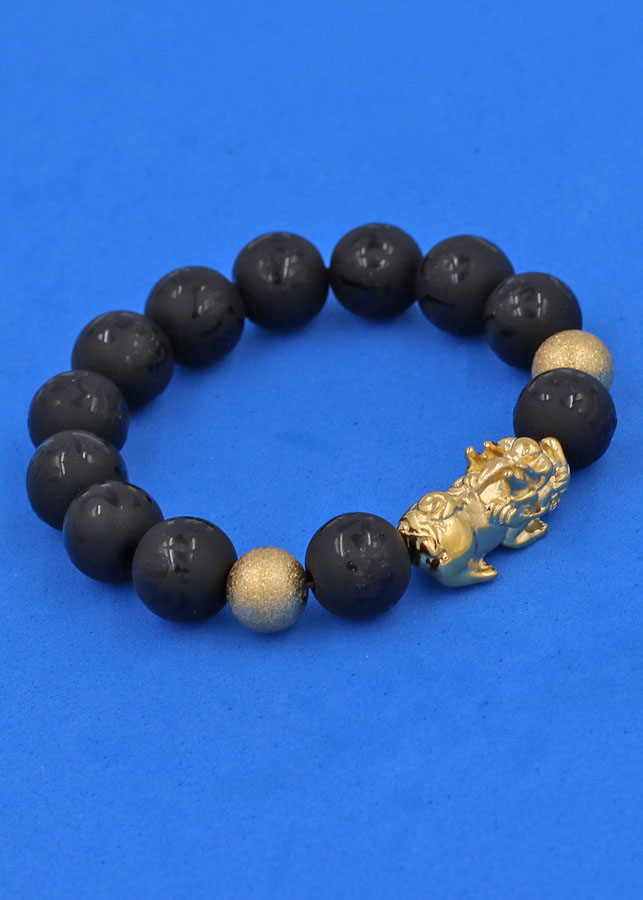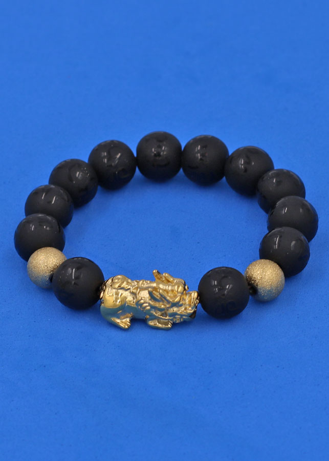✨Vòng tay đá Thạch Anh Đen khắc Phật Chú chữ mờ 12 ly - cẩn Tỳ Hưu Phong Thủy inox vàng VTAEPMTHHBV12 - hợp mệnh Thủy, mệnh Mộc