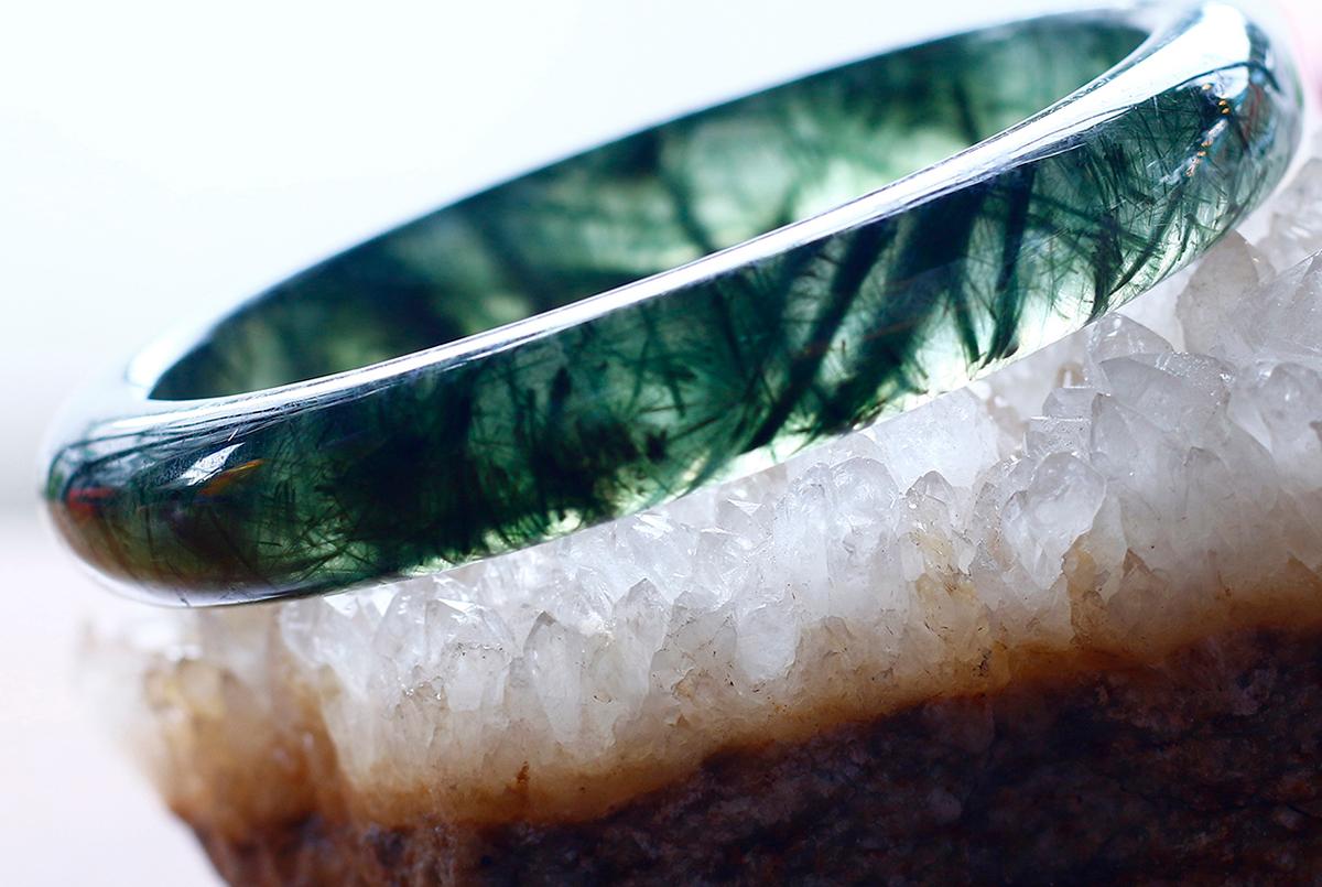 Vòng nguyên khối đá thạch anh tóc xanh bản hẹ - Hợp mệnh mộc, mệnh hỏa | Ngọc Quý Gemstones |