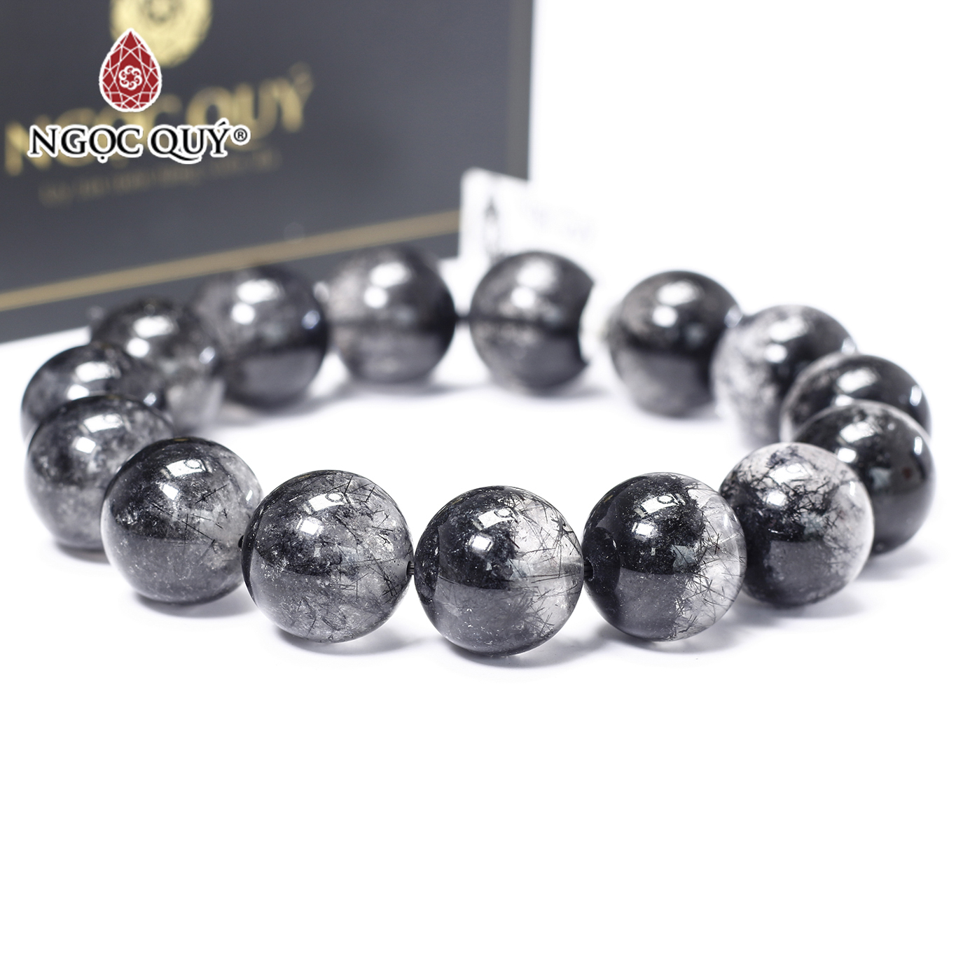 Là một trong những sản phẩm bán chạy nhất của Ngọc Quý Gemstones, vòng tay đá Thạch Anh Tóc Đen tự tin khoe vẻ đẹp quyến rũ và sang trọng của mình với những que tinh thể màu đen được sắp xếp khắng khít một cách độc đáo, vô tình tạo nên sức hút bí ẩn kì lạ đối với những ai vô tình nhìn thấy nó.