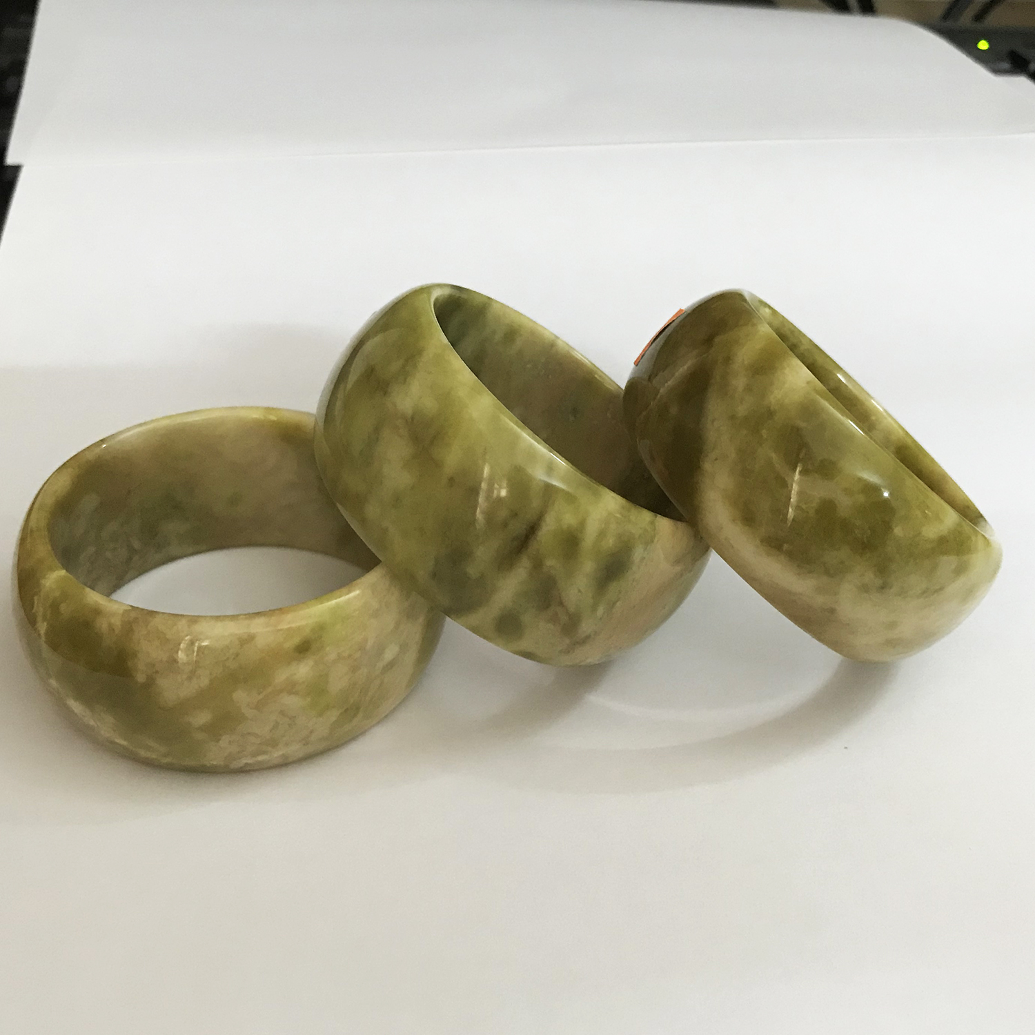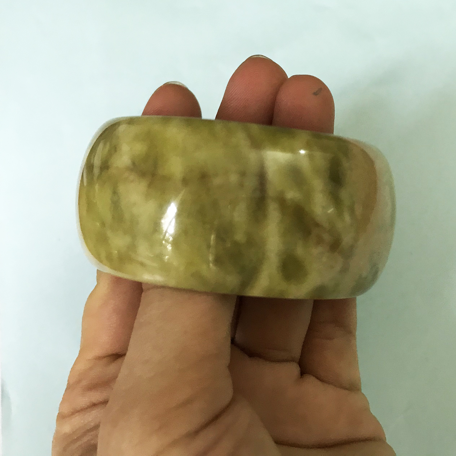 - Kiểu dáng: Bản hẹ, bản dẹp, bản to, bản dày hay bản cao 3cm, chắc nặng, dày và mát tay, rất độc đáo , tất cả là hình chụp thật, không chỉnh sửa , bên ngoài màu sáng và bóng hơn trong hình. Còn cũng có nhiều size và nhiều màu khác từ đá ngọc thật Có nhiều màu khác để lựa chọn như xanh đen, xanh cốm, trắng, vàng nhẹ, vàng ô liu, xanh nõn chuối, hồng đỏ, hồng đen đen, trắng tất cả đều từ đá thật đá tự niên của VN) ***CÁCH ĐO TAY VÀ VÒNG TAY: Lấy thước dây hoặc miếng giấy quấn xung quanh gù bàn tay cần đeo ( sau khi đã khum tay lại ) tưởng tượng chiếc vòng sẽ lọt qua chỗ to nhất và cứng nhất của bàn tay nhất khi đã khum bàn tay lại (mục đích là cho chiếc vòng có thể lọt qua) xem được bao nhiêu cm (nếu là miếng giấy thì đo lại miếng giấy để biết). Rồi so sánh bảng sau. và tên vòng có size của vòng, Tìm trên gian hàng này có nhiều loại khác nhau từ nhỏ nhất cho đến size bự nhất là 7.2 ( cho người trên 100 kg) Chu vi tay dài 17cm thì size vòng là 5.2 cm Chu vi tay = dài 18cm thì size vòng là 5.4cm/ chu vi tay dài 19cm thì size vòng là 5.6 cm Chu vi tay = dài 20cm thì size vòng là 5.8cm/ chu vi tay dài 21cm thì size vòng là 6.0 cm 5.Tại sao nên đeo ngọc thật hay đá thật? Vì nó mang năng lương dương do sự biến đổi chịu tác động của nhiệt độ rất cao trong lòng đất hàng triệu năm mà hình thành nên đá. Ngọc cũng là đá nhưng nó có độ trong và xuyên thấu ánh sáng, nó đẹp và hiếm hơn đá. Được tìm thấy ở một số nơi ở VN như tỉnh Yên Bái. Những chiếc vòng ngọc này còn gọi là đá cẩm thạch, đá ngọc serpentine được chọn tỉ mỉ từ những tảng đá tự nhiên nguyên khối. Không phải tảng đá nào cũng có chất ngọc trong vắt bên trong (màu trong thấu đèn nằm trong đá gọi là ngọc) Chất này được cưa cắt từ tảng đá và chế tác thủ công thành trang sức. Nên nó có năng lượng dương rất tích cực, Mang đá bên mình để “ nhân hữu thạch tất khang” ( Người có đá tất sẽ khỏe mạnh). Vì vậy nó có lợi cho sức khỏe Giá của nhà chế tác thủ công nên khách được dùng hàng thật với gốc của gia đình sản xuất