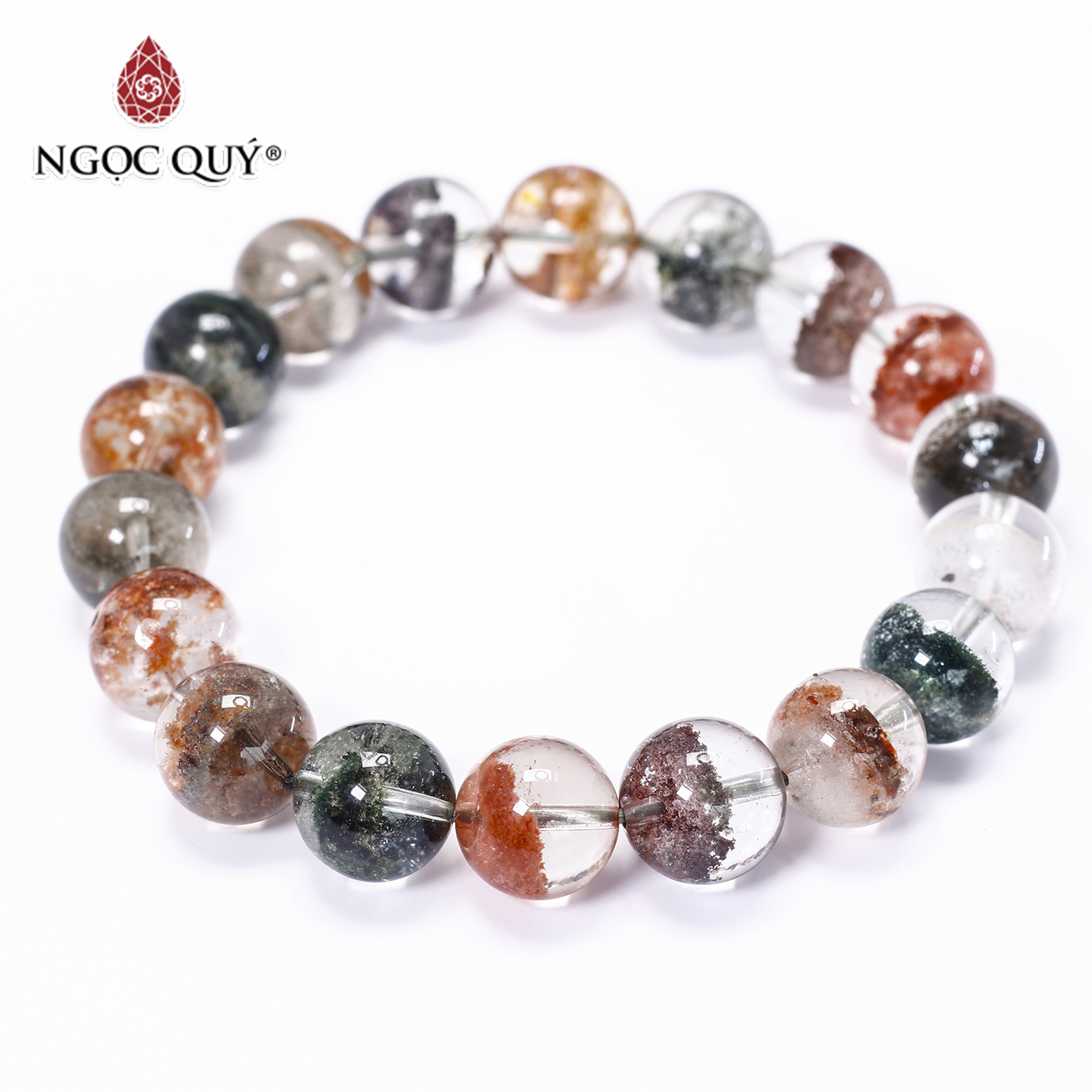 Vòng tay đá thạch anh ưu linh đa sắc phối charm - Hợp ngũ mệnh | Ngọc Quý Gemstones |