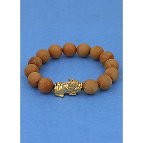 ✨Vòng tay gỗ ngọc am 12 ly - cẩn Tỳ Hưu inox vàng VGGATHV12