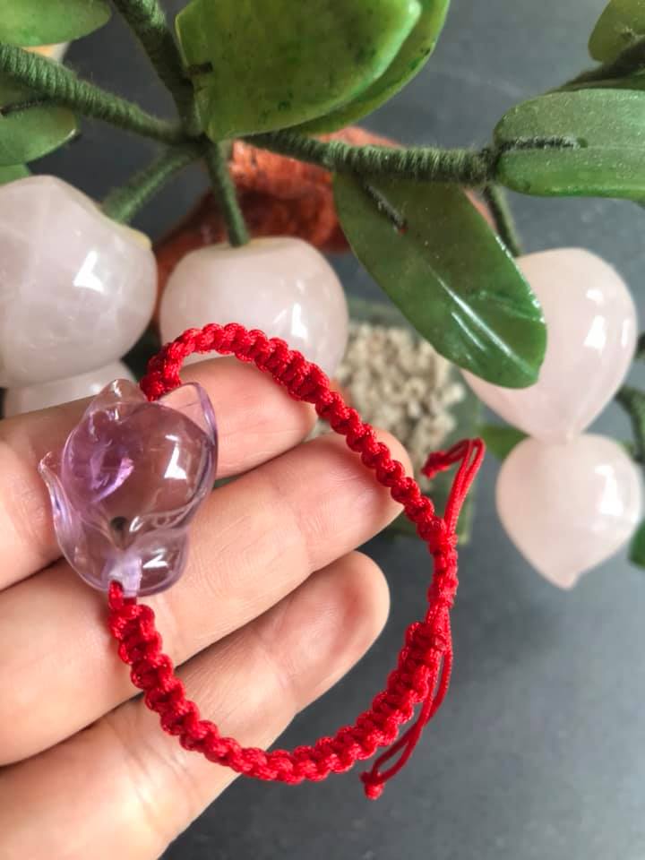 ✨VÒNG TAY HANDMADE HỒ LY MAY MẮN TÀI LỘC VỀ TÌNH DUYÊN CÔNG DANH ĐÁ THẠCH ANH TÍM TỰ NHIÊN DÂY ĐỎ HỢP NỮ MỆNH HỎA MỆNH THỔ Ạ