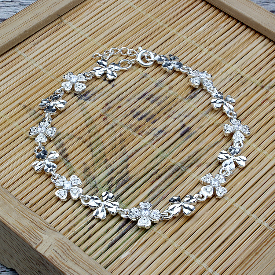 Là con gái, hẳn bạn luôn bị cuốn hút trước những bộ cánh thời trang và những đôi giày sành điệu. Tuy nhiên để làm hoàn hảo hình ảnh của mình trong mắt người đối diện, các bạn cần thêm những món phụ kiện bé bé xinh xinh để điểm tô cho vẻ ngoài thêm ấn tượng. Và hôm nay, S sẽ mang đến các bạn cơ hội sở hữu chiếc lắc tay rất dễ thương, được làm bằng bạc ta. Sản phẩm thích hợp với những bạn gái có phong cách dịu dàng, nữ tính.