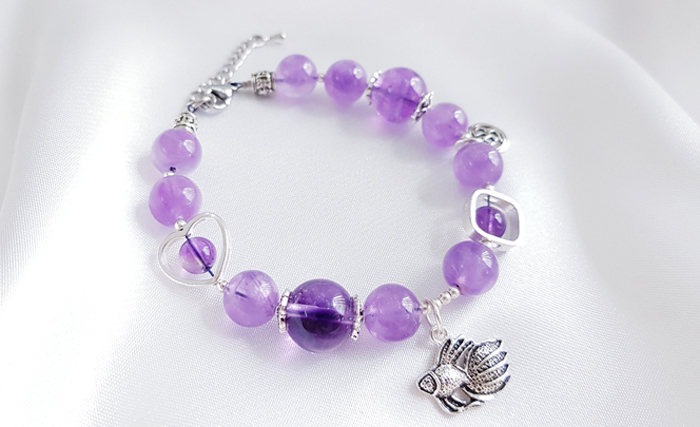 Vòng tay đá thạch anh tím phối charm bạc - Hợp mệnh hỏa, thổ | Ngọc Quý Gemstones |