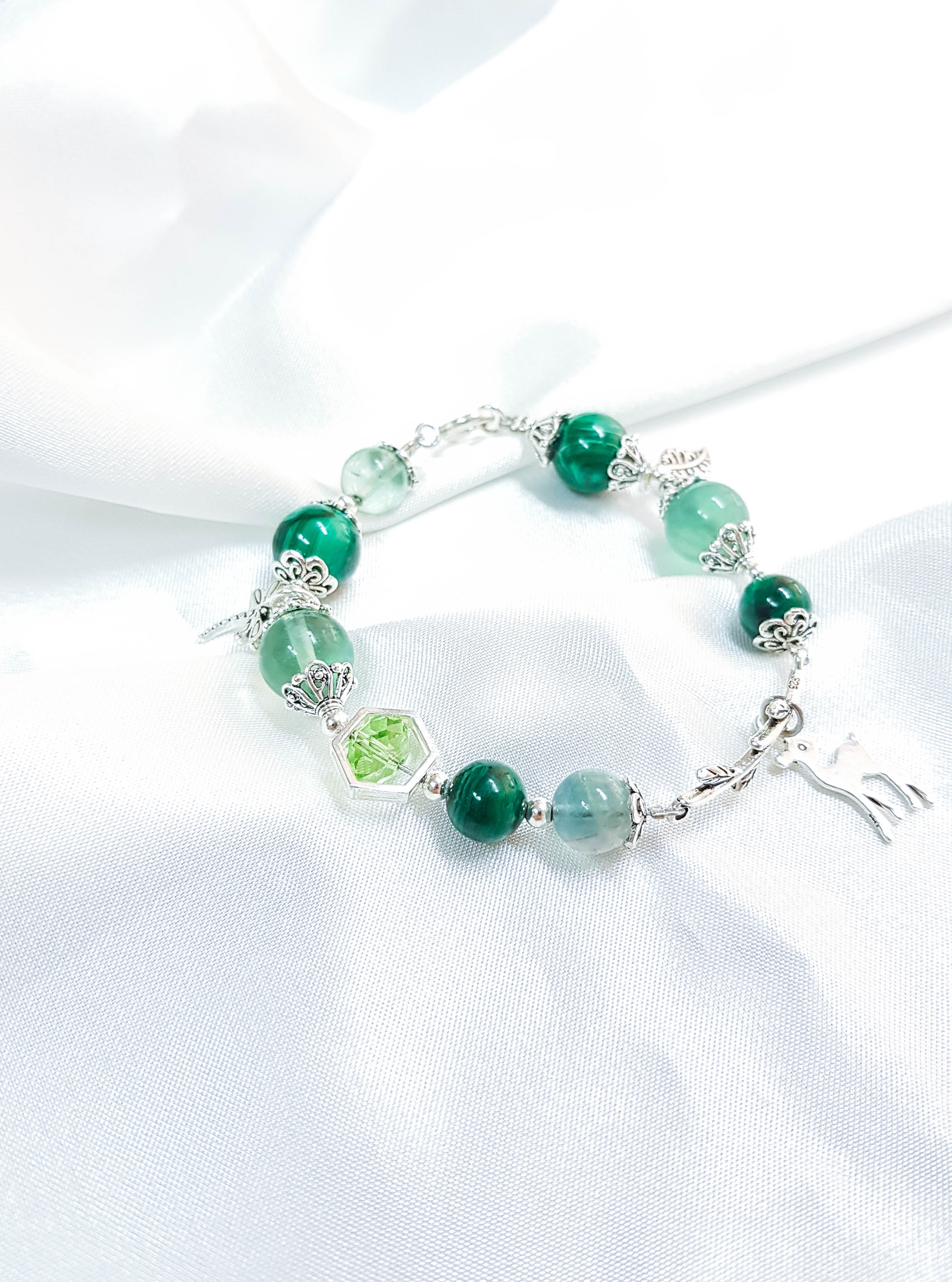 Vòng Thạch Anh Ưu Linh Xanh Phối Hoa Thạch anh xanh Đá Thạch Anh Xanh (Green Aventurine) còn được gọi là “Đá của Cơ Hội”, nó được cho là loại đá mang lại may mắn