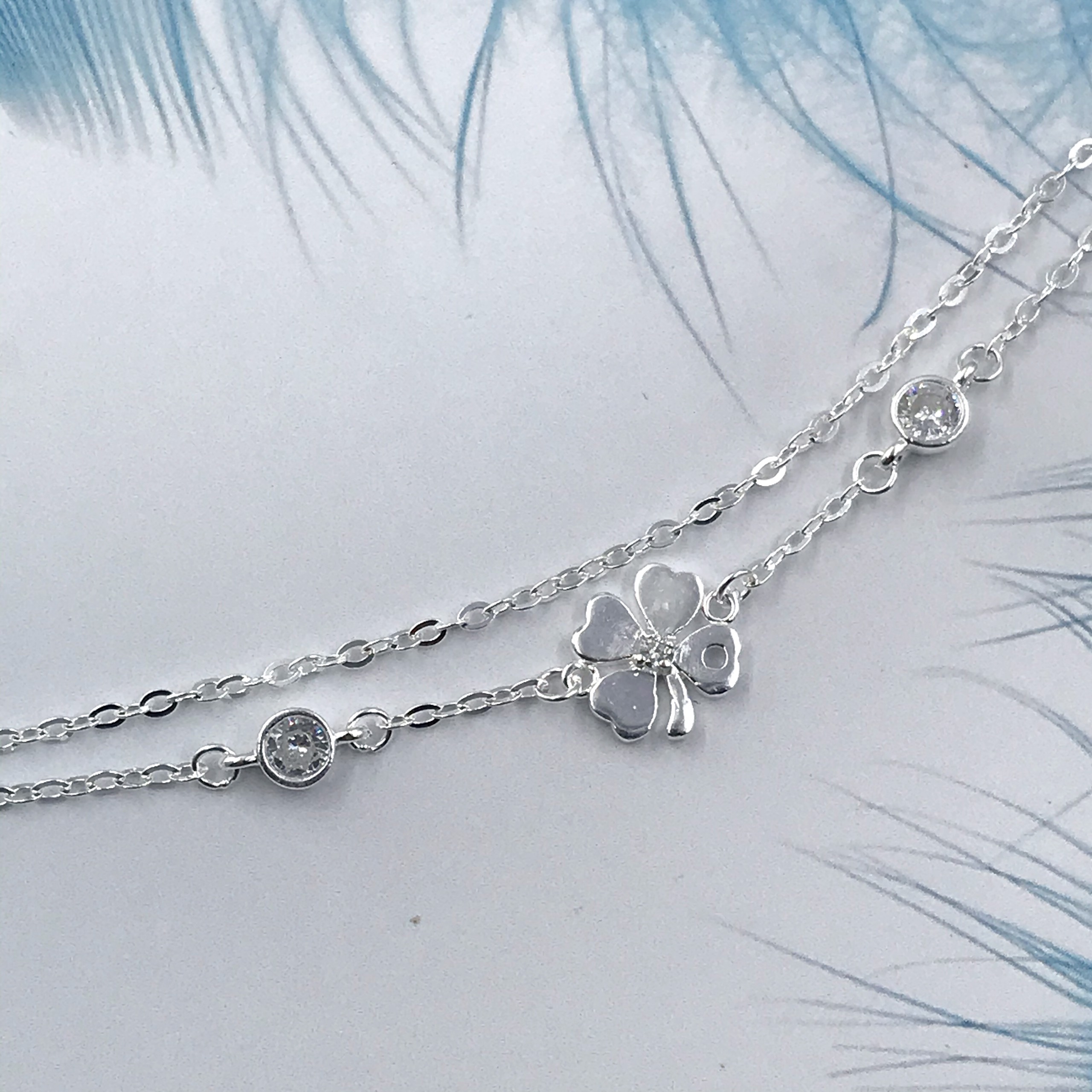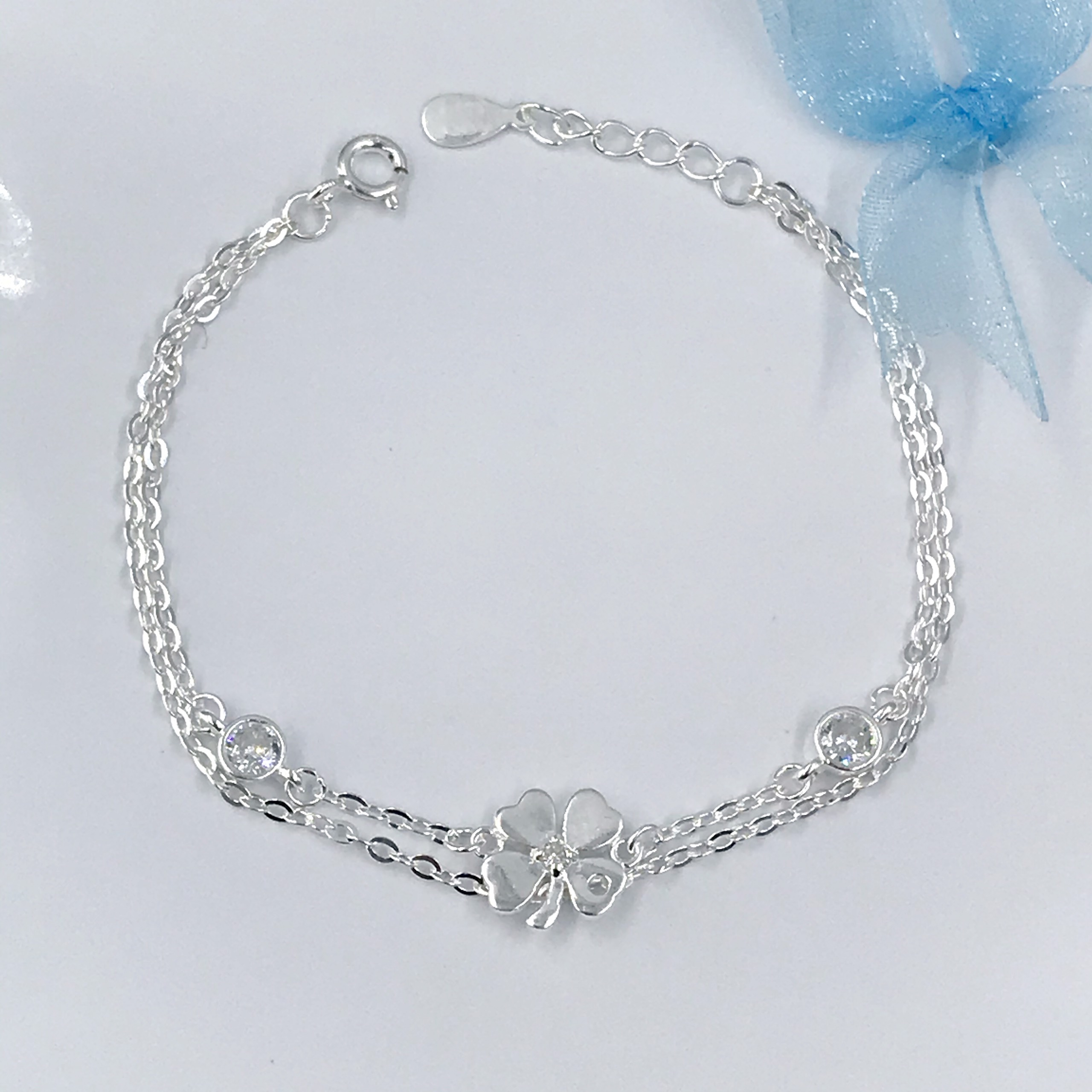 Vòng Tay, Lắc Tay Nữ Bạc chuẩn 925 được thiết kế tinh tế sang trọng hình cỏ 4 lá may mắn kèm đá CZ cao cấp chống xước, sáng lung linh là món quà ý nghĩa cho các nàng xinh đẹ