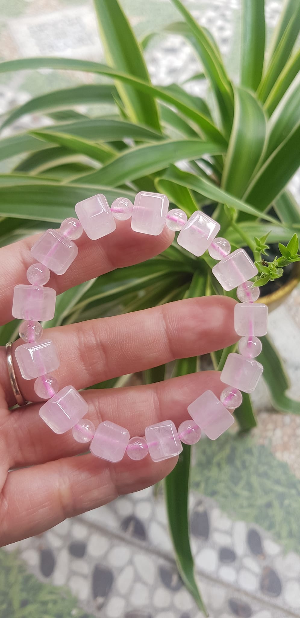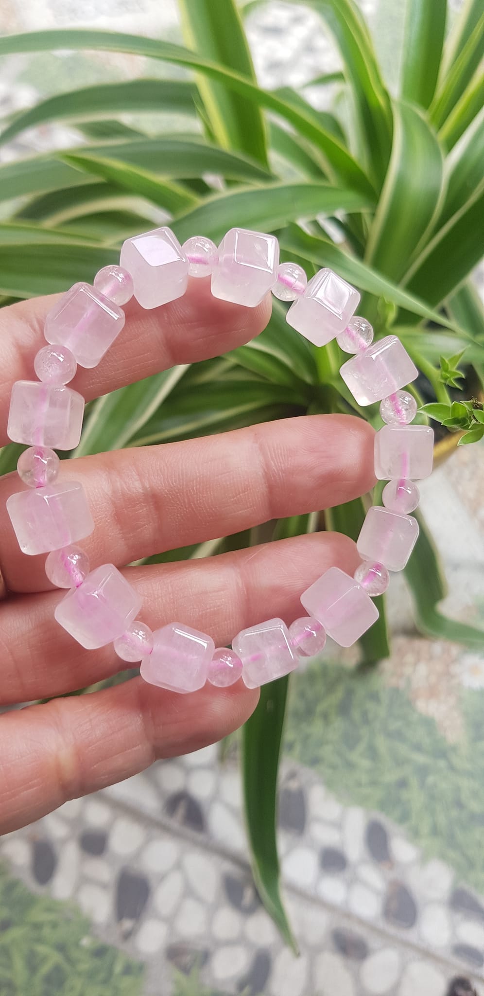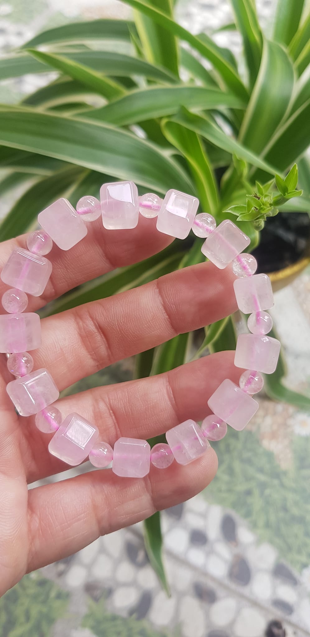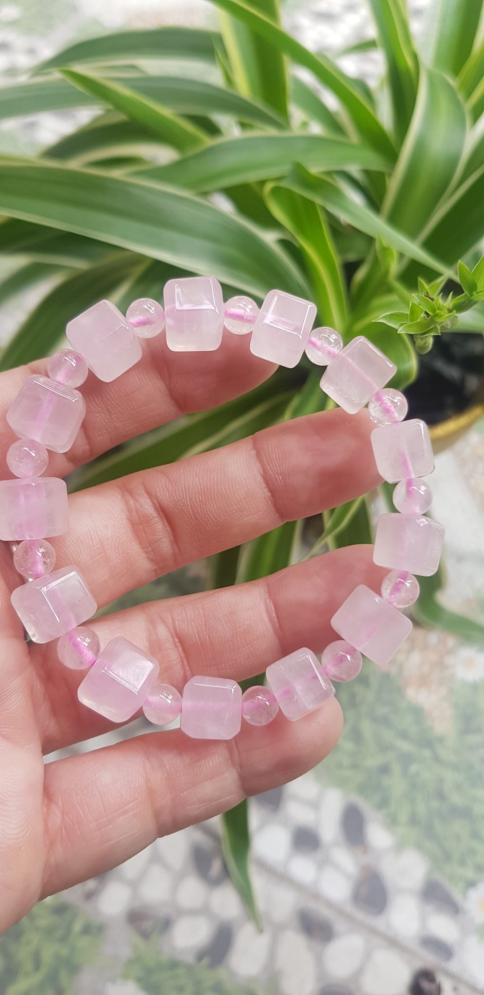 ✨Vòng tay nữ kiểu đá thạch anh hồng tự nhiên hạt vuông tròn đan xen rất là đẹp Size hạt vuông 9mm phối bi nhỏ 6mm màu hồng tươi nhẹ nhàng nữ mệnh hỏa mệnh thổ đeo có 499k ạ