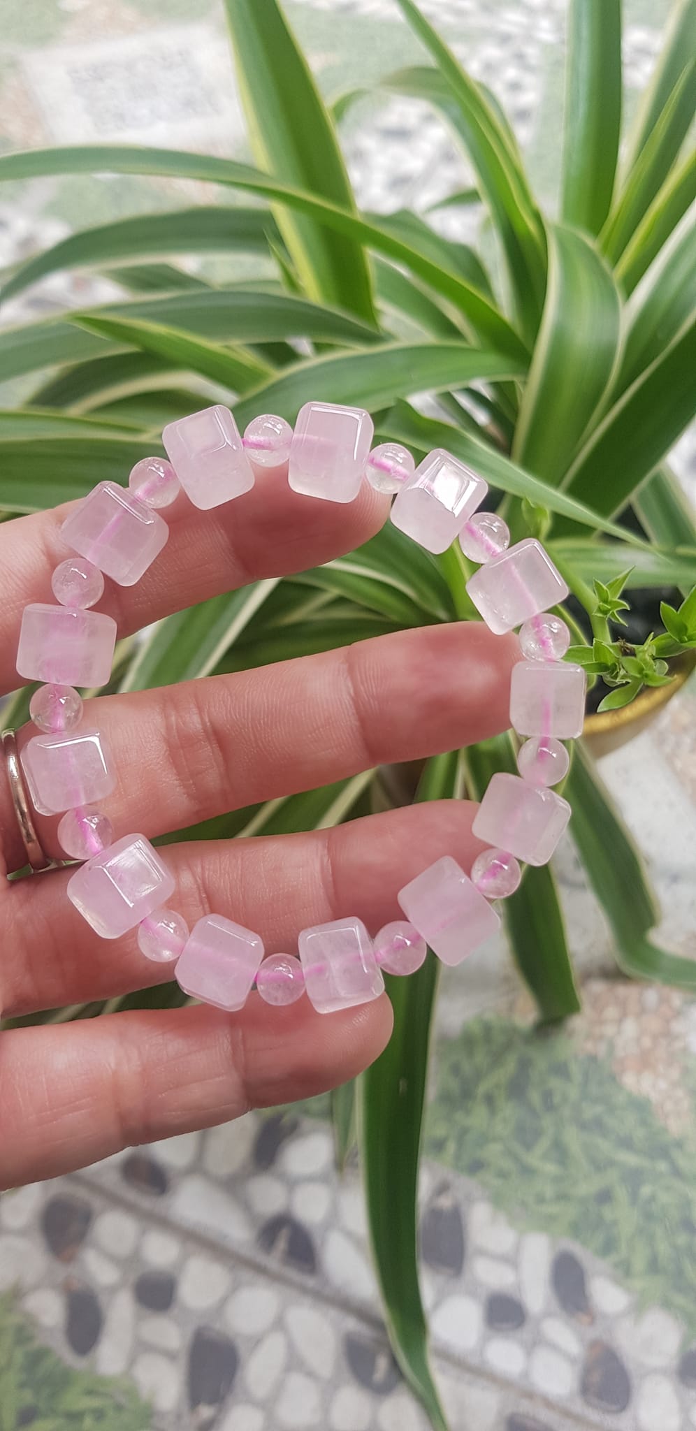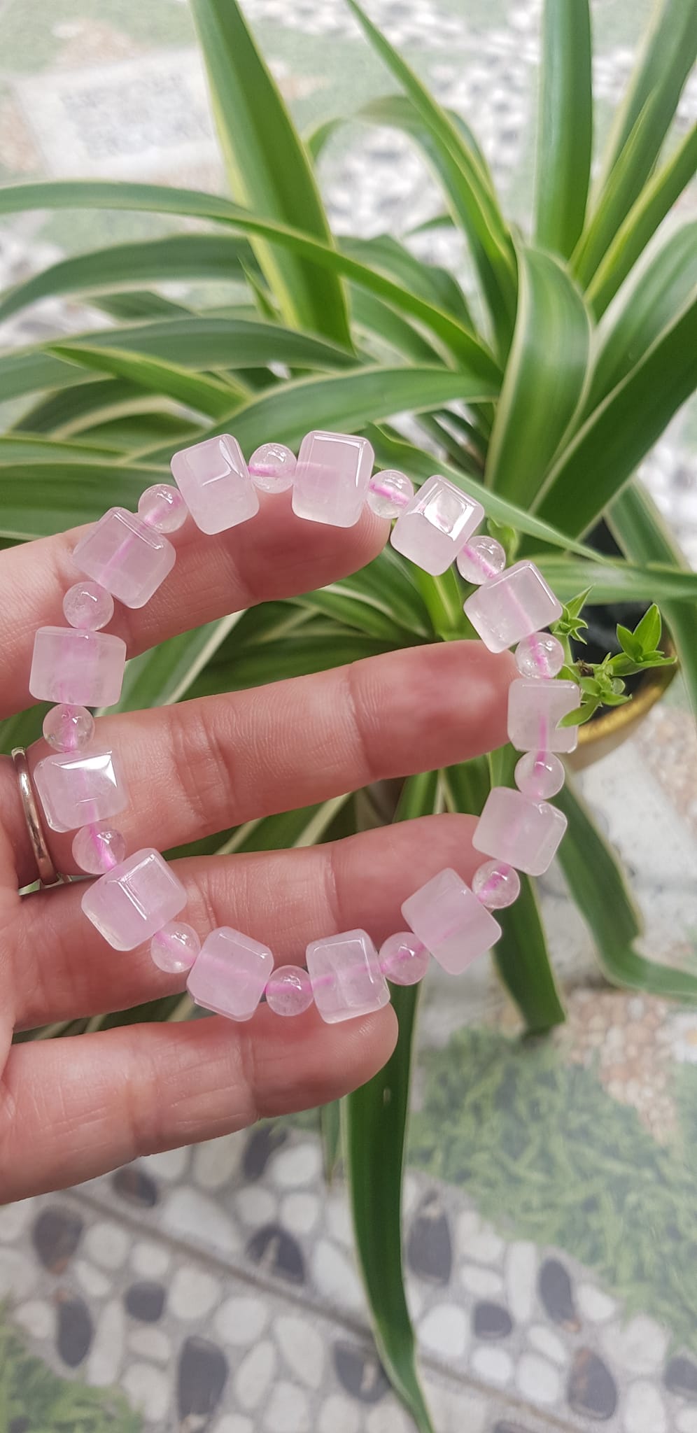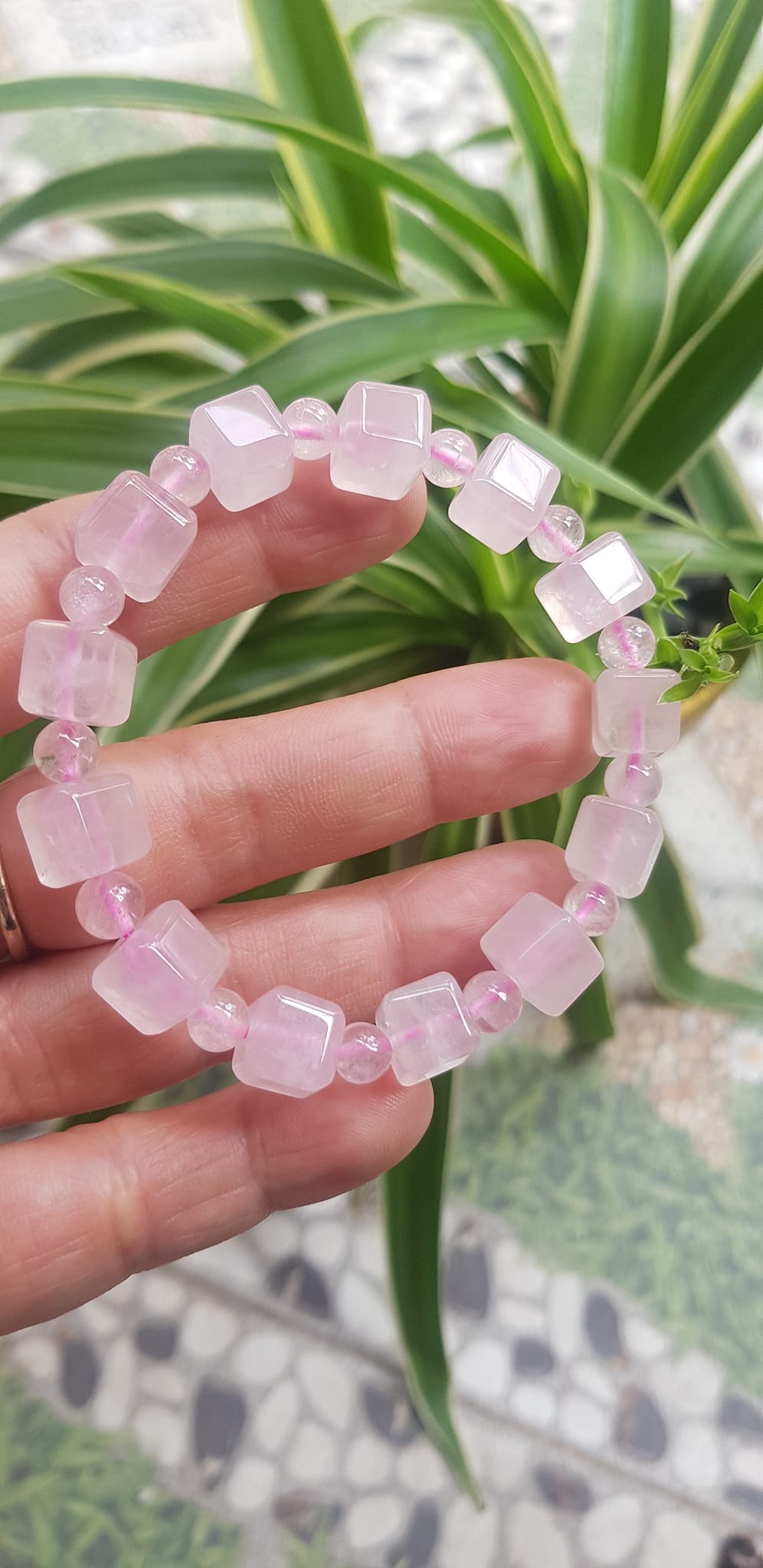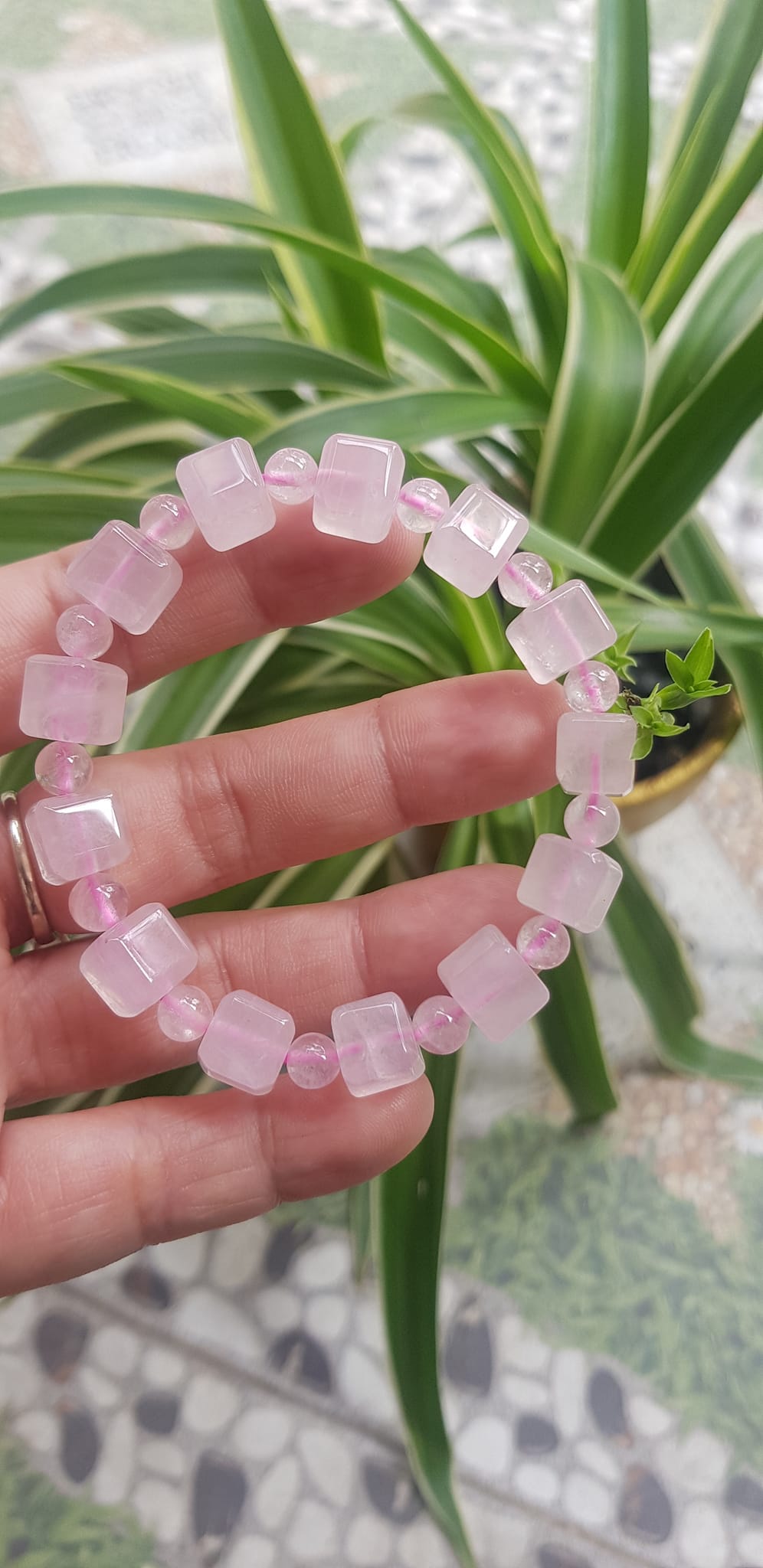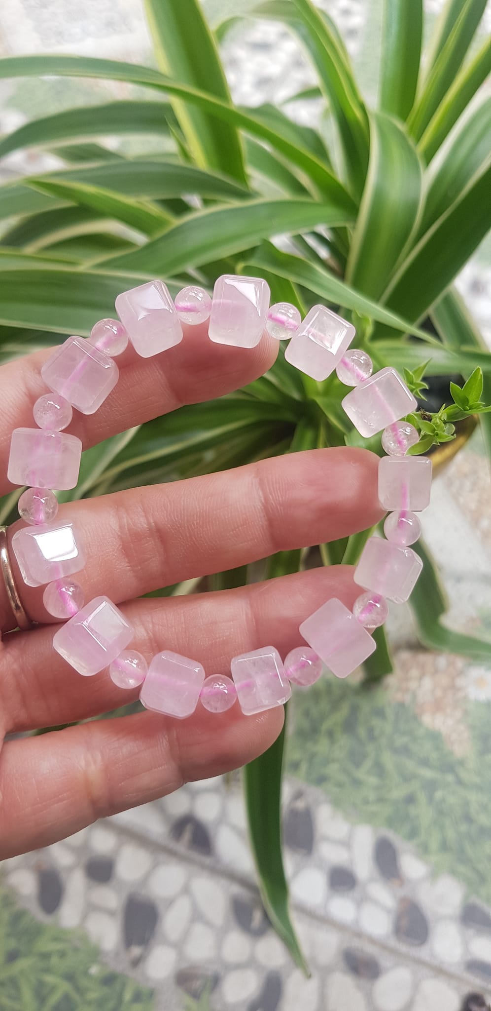 ✨Vòng tay nữ kiểu đá thạch anh hồng tự nhiên hạt vuông tròn đan xen rất là đẹp Size hạt vuông 9mm phối bi nhỏ 6mm màu hồng tươi nhẹ nhàng nữ mệnh hỏa mệnh thổ đeo có 499k ạ