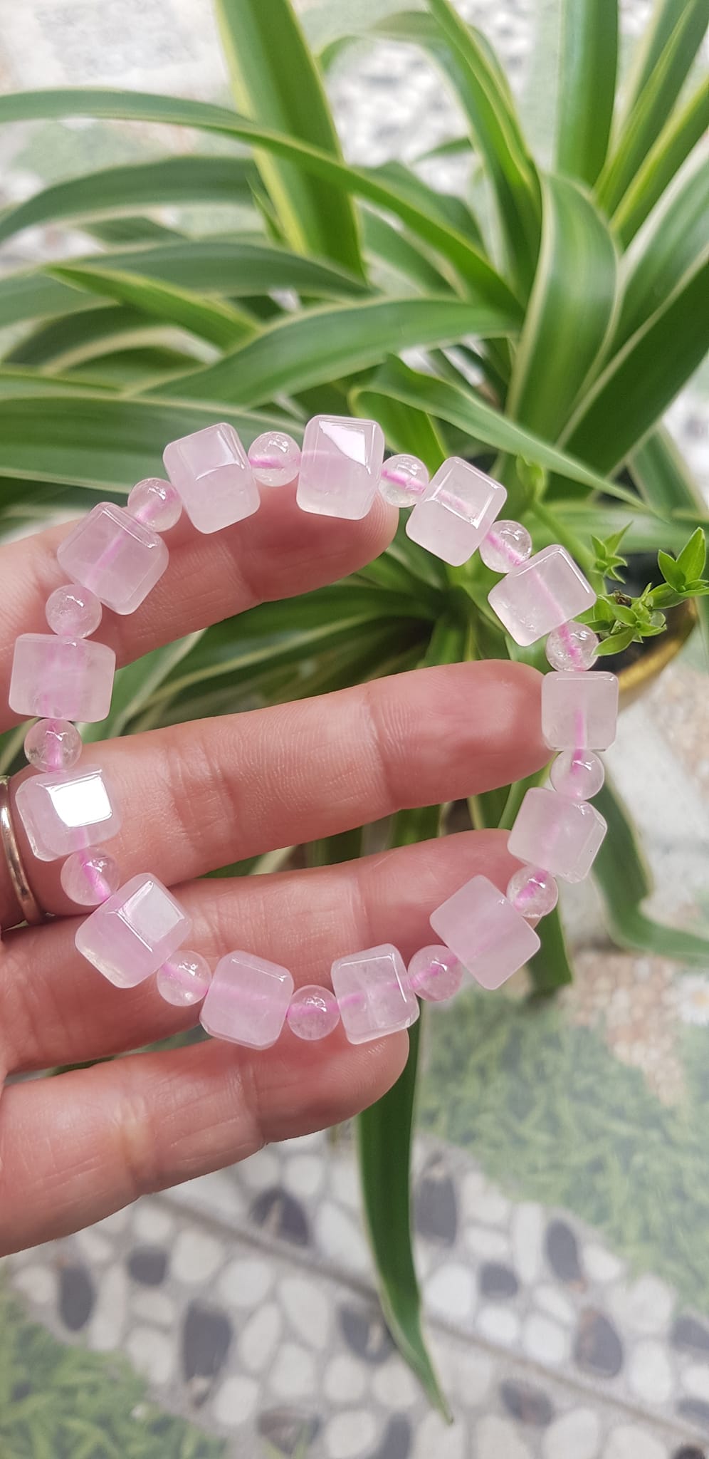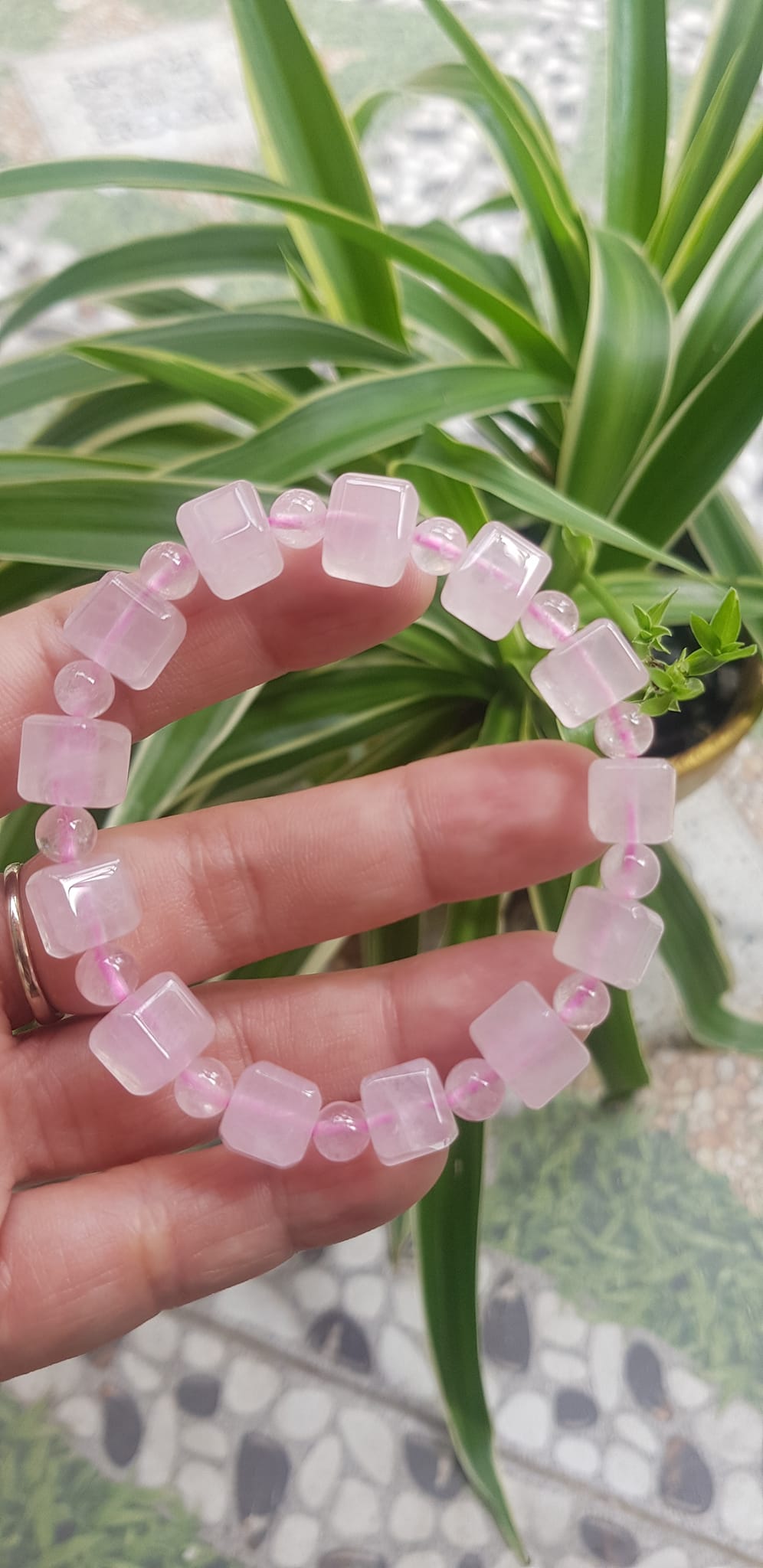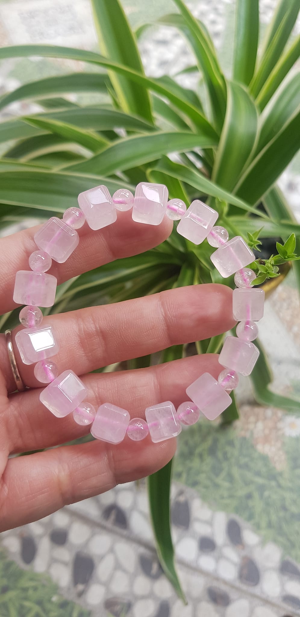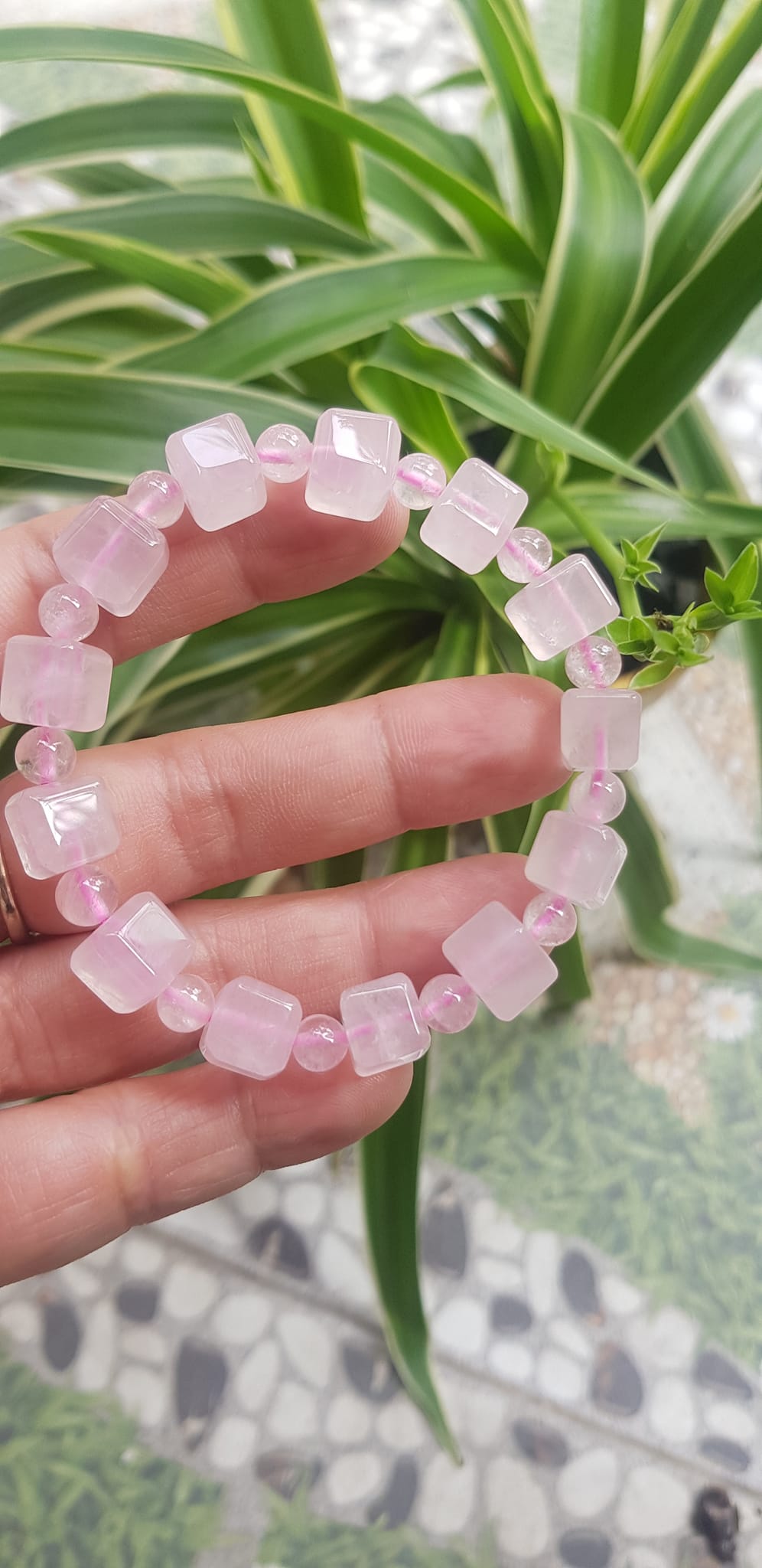 ✨Vòng tay nữ kiểu đá thạch anh hồng tự nhiên hạt vuông tròn đan xen rất là đẹp Size hạt vuông 9mm phối bi nhỏ 6mm màu hồng tươi nhẹ nhàng nữ mệnh hỏa mệnh thổ đeo có 499k ạ
