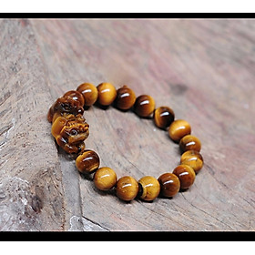 Vòng Đá Mắt Hổ Nâu Vàng mix Tỳ Hưu Phong Thủy cho người mệnh THỔ - KIM