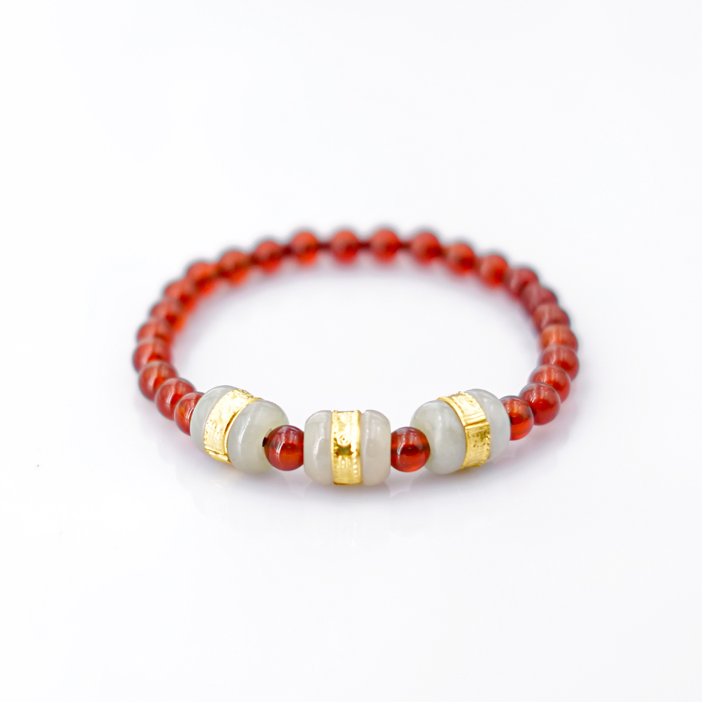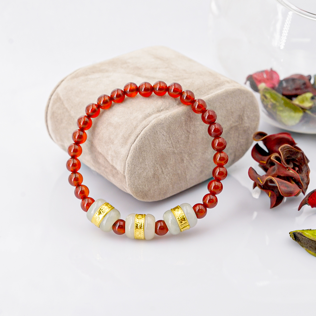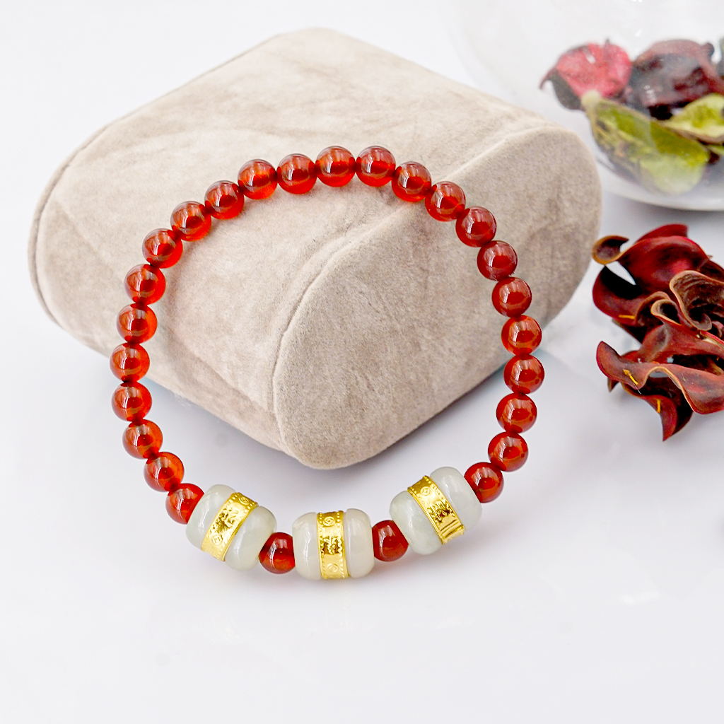 Vòng tay phong thủy Mã Não đỏ 6mm + 3 lu ngọc by ANQLO được chế tác 100% từ đá mã não tự nhiên, Đá mã não có tác dụng giảm căng thẳng, lo lắng,