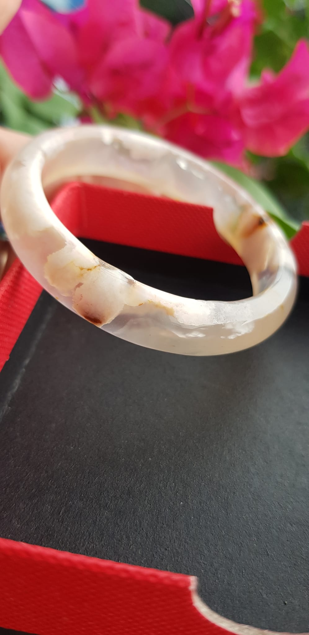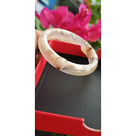 Vòng tay Nữ Bản Hẹ Mới Đá Mã Não Bông Tuyết Hồng nhẹ trắng trong bóng đẹp Ni 53mm 52kg-55kg SUNNY Q8