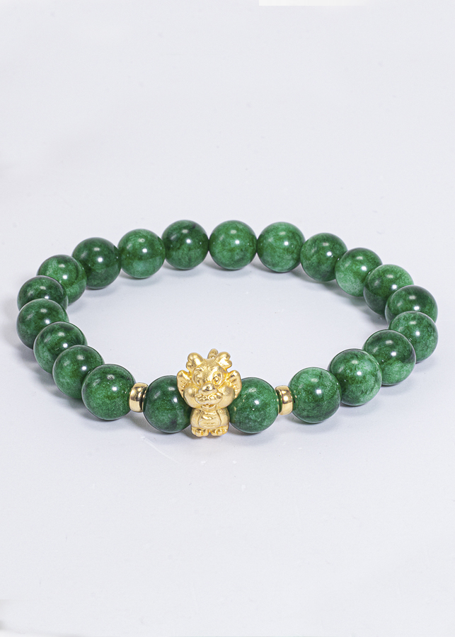 Vòng Tay Phong Thủy Nữ Đá Cẩm Thạch Sơn Thủy Phối Charm Tuổi Thìn Bạc Mạ Vàng 24K (8mm) Mệnh Mộc, Hỏa