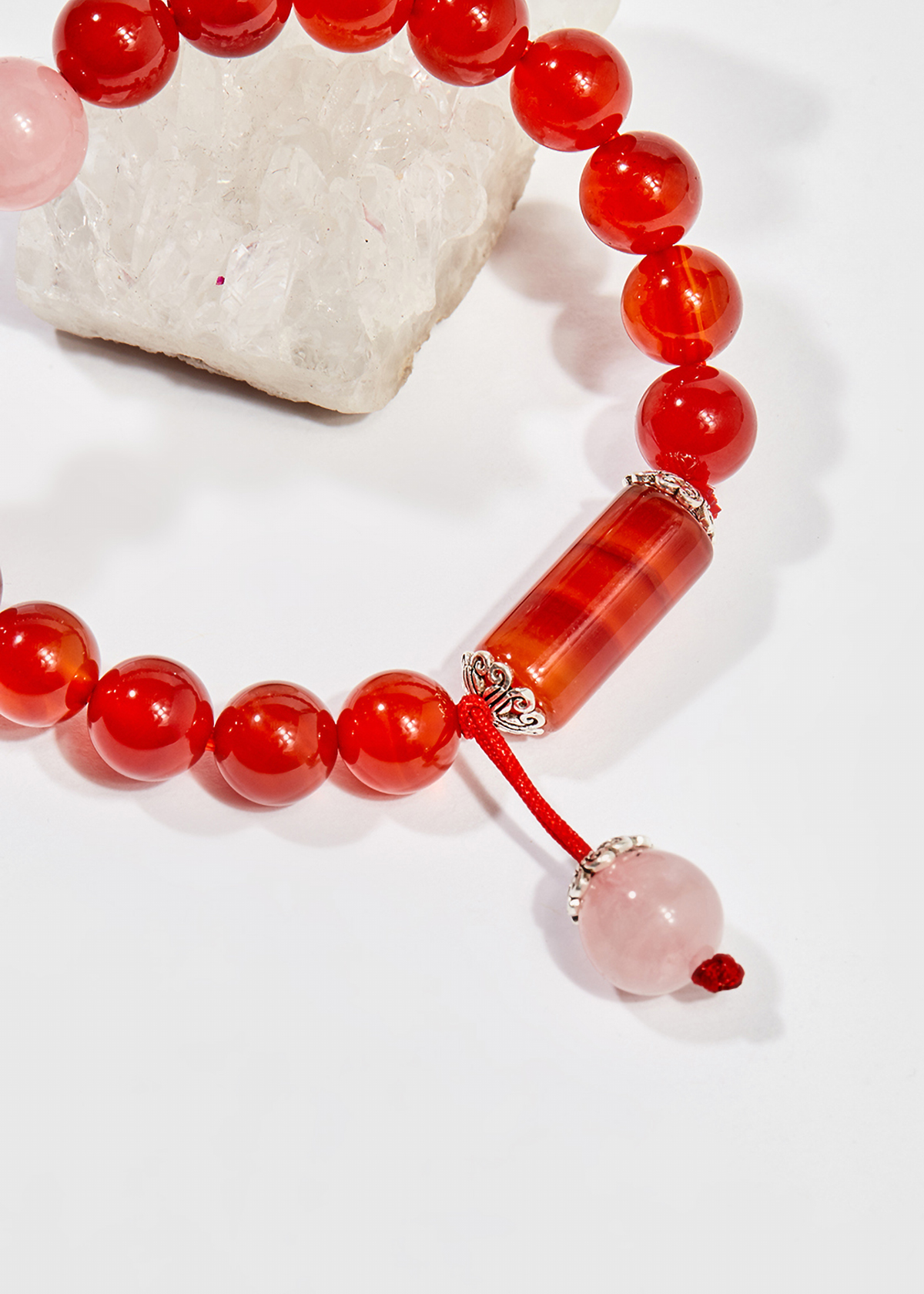 ✨Vòng tay phong thủy nữ đá mã não đỏ mix thạch anh hồng 8mm mệnh hỏa , thổ - Ngọc Quý Gemstones