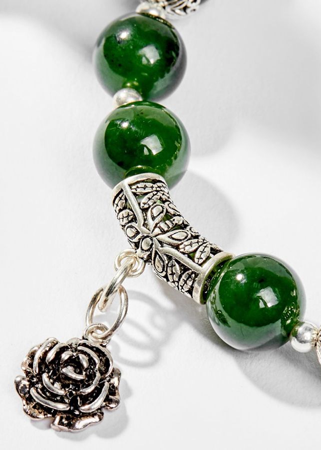 Vòng Tay Phong Thủy Nữ Đá Ngọc Bích Phối Charm Hoa Bạc (10mm) Mệnh Mộc, Hỏa