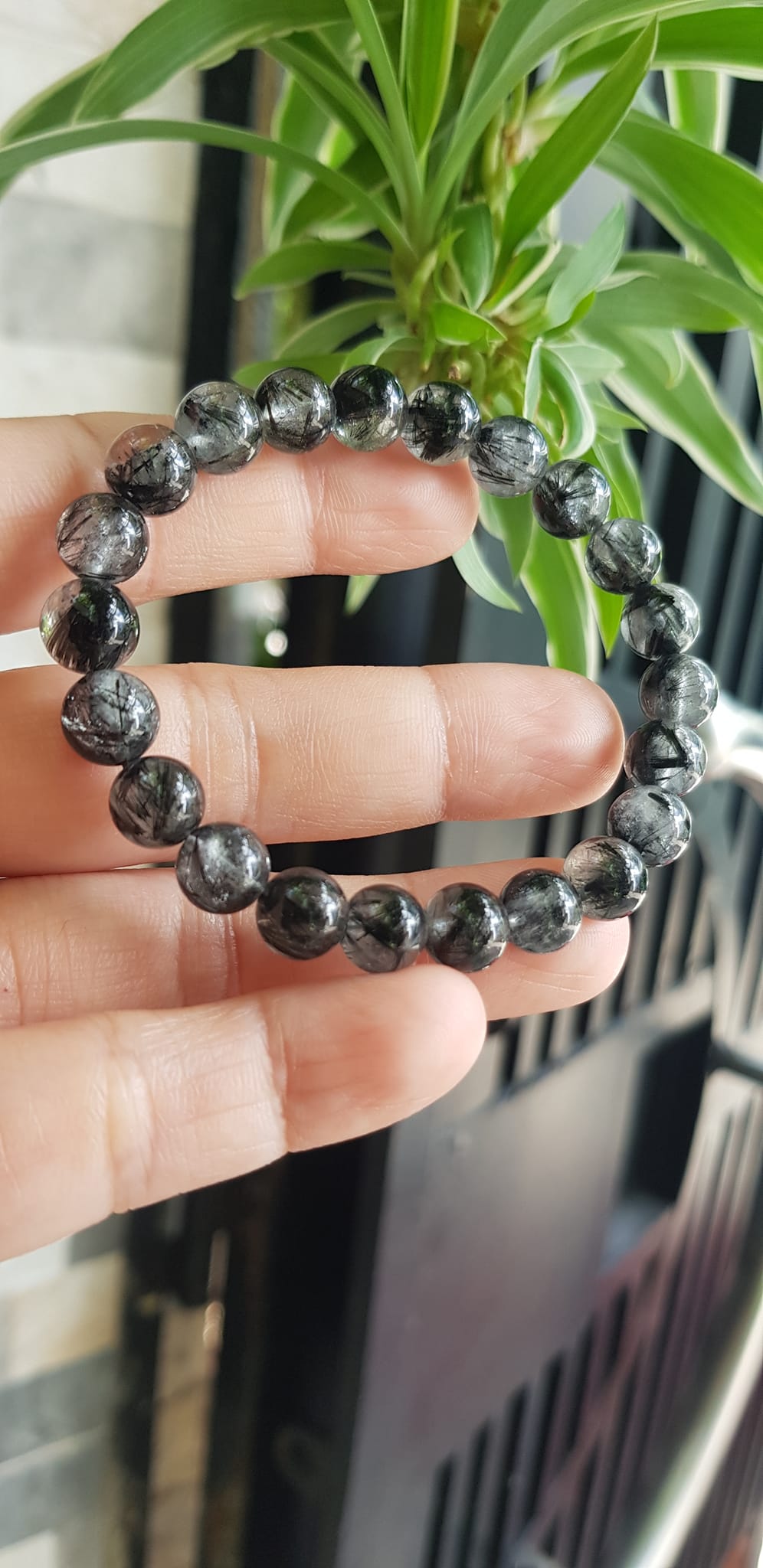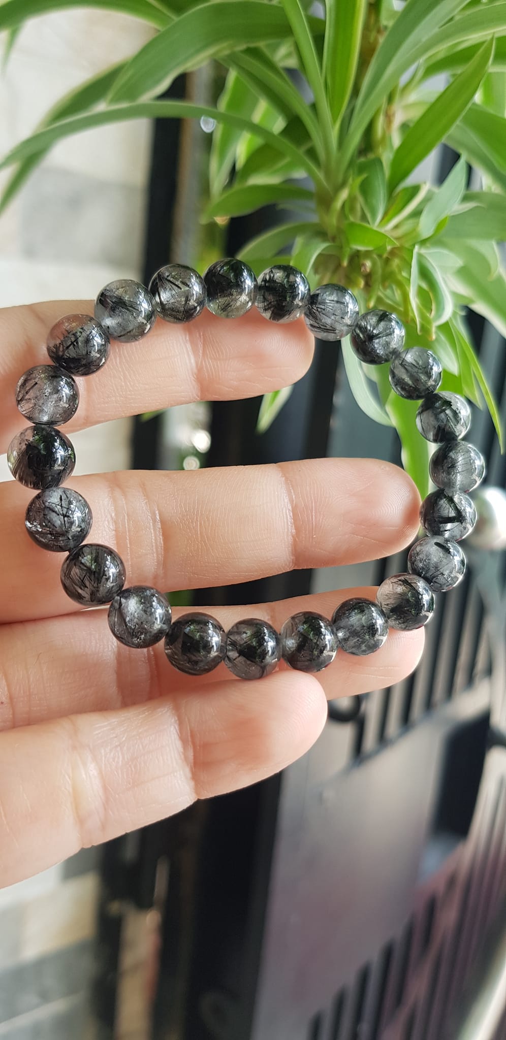 Vòng tay thạch anh tóc đen tự nhiên nữ size hạt 8mm