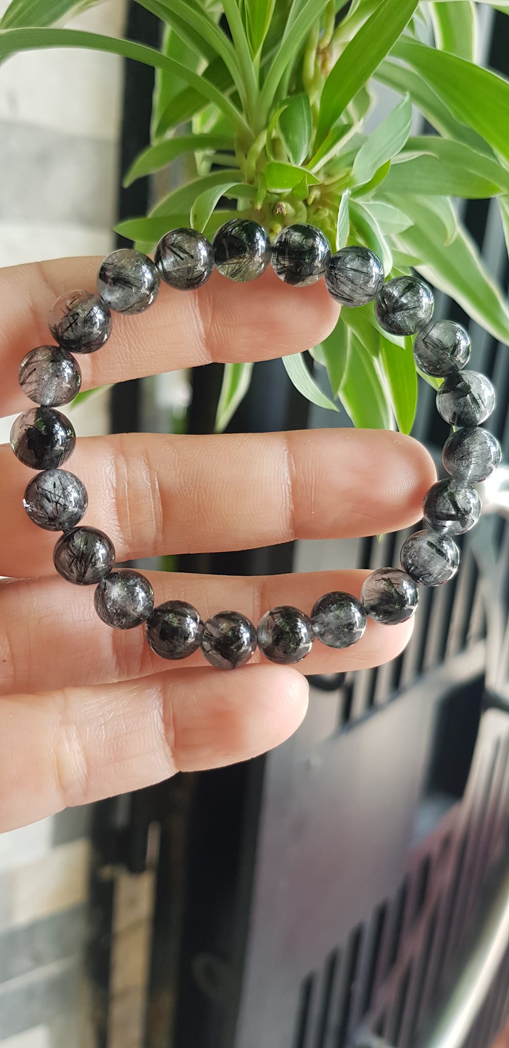 Vòng Tay Phong Thủy THẠCH ANH TÓC ĐEN cho Mệnh Mộc - Thủy
