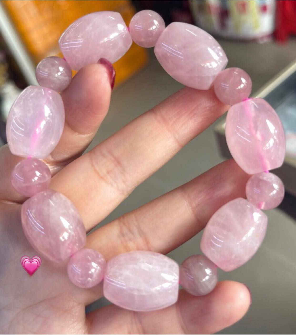 ✨Vòng thạch anh hồng tự nhiên phối kiểu xinh xinh hạt lu tròn hồng hồng rất đẹp nữ mệnh hỏa thổ ạ