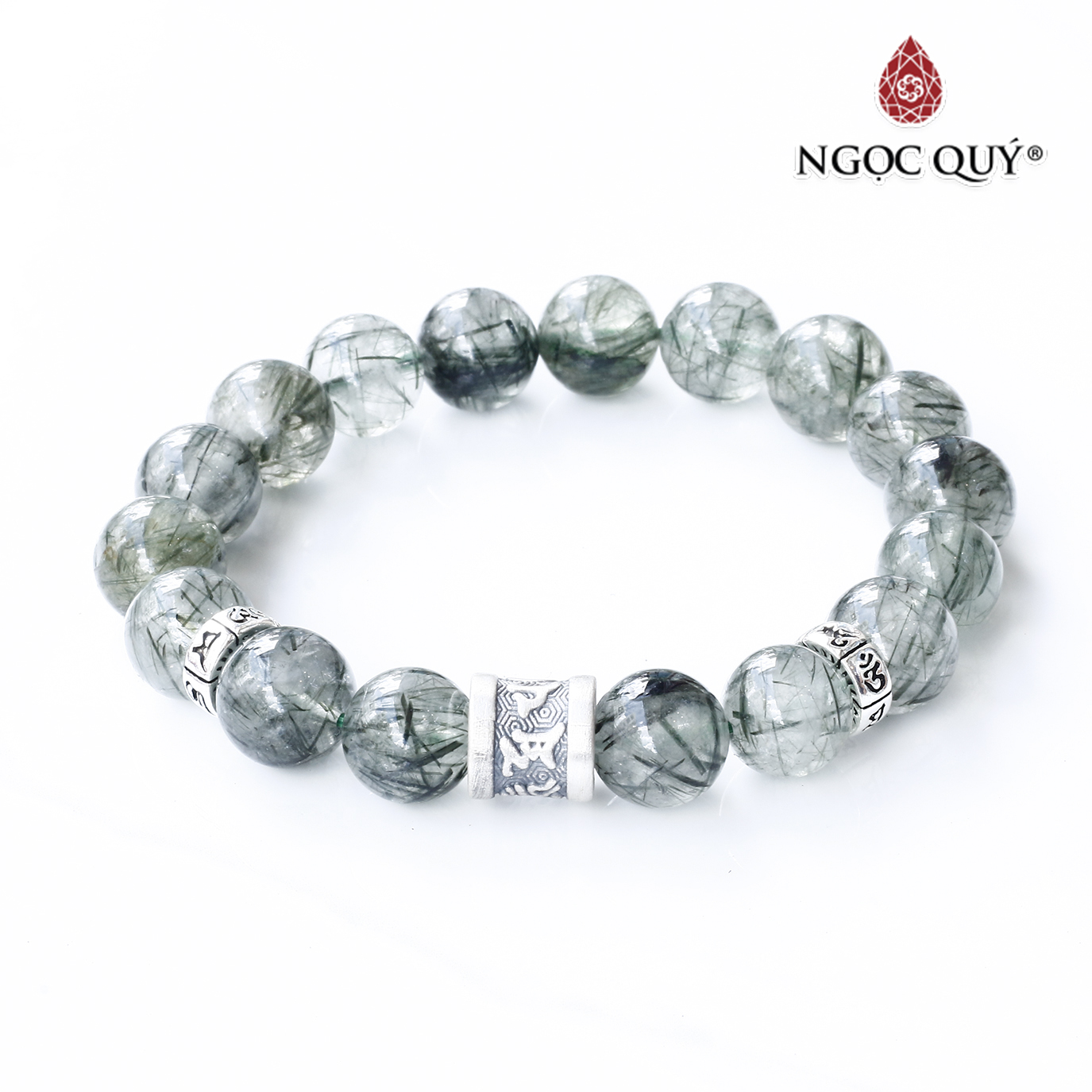 Vòng tay đá thạch anh tóc xanh phối charm bạc - Hợp mệnh mộc, hỏa | Ngọc Quý Gemstones |