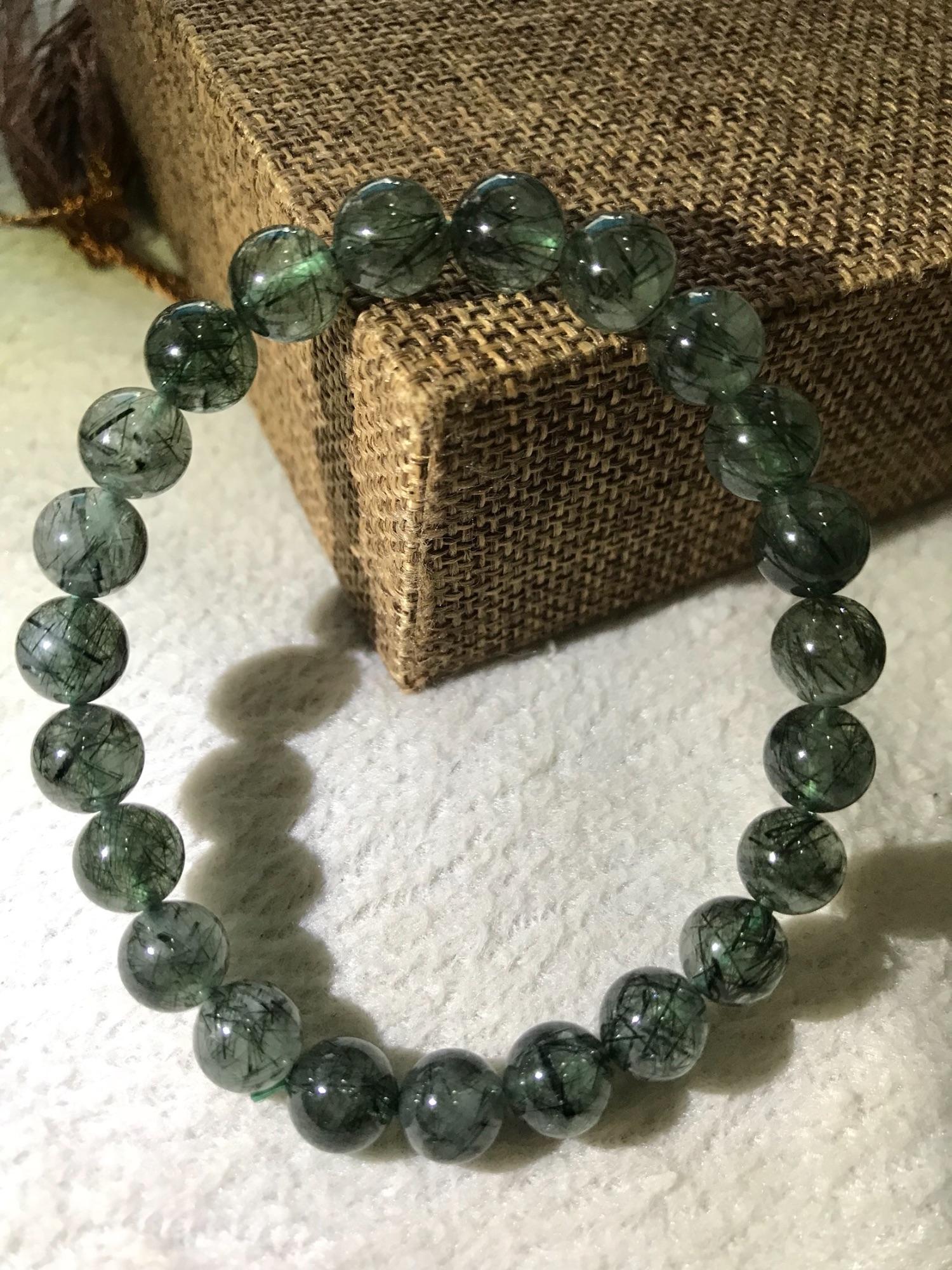 Vòng tay nữ chuỗi đá thạch anh tóc xanh nhuyễn tự nhiên trong đẹp vòng 8mm đẹp mệnh Thủy Mộc hỏa ạ