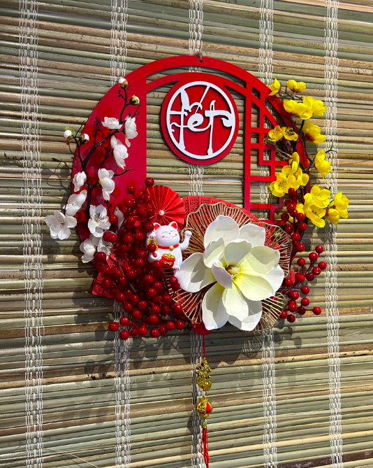 Vòng trang trí Tết - Khung decor hoa -Kích thước 40cm - Cây giả, hoa lụa Decor trang trí nhà cửa Mời bạn ghé thăm gian hàng shop để khám phá các sản phẩm &