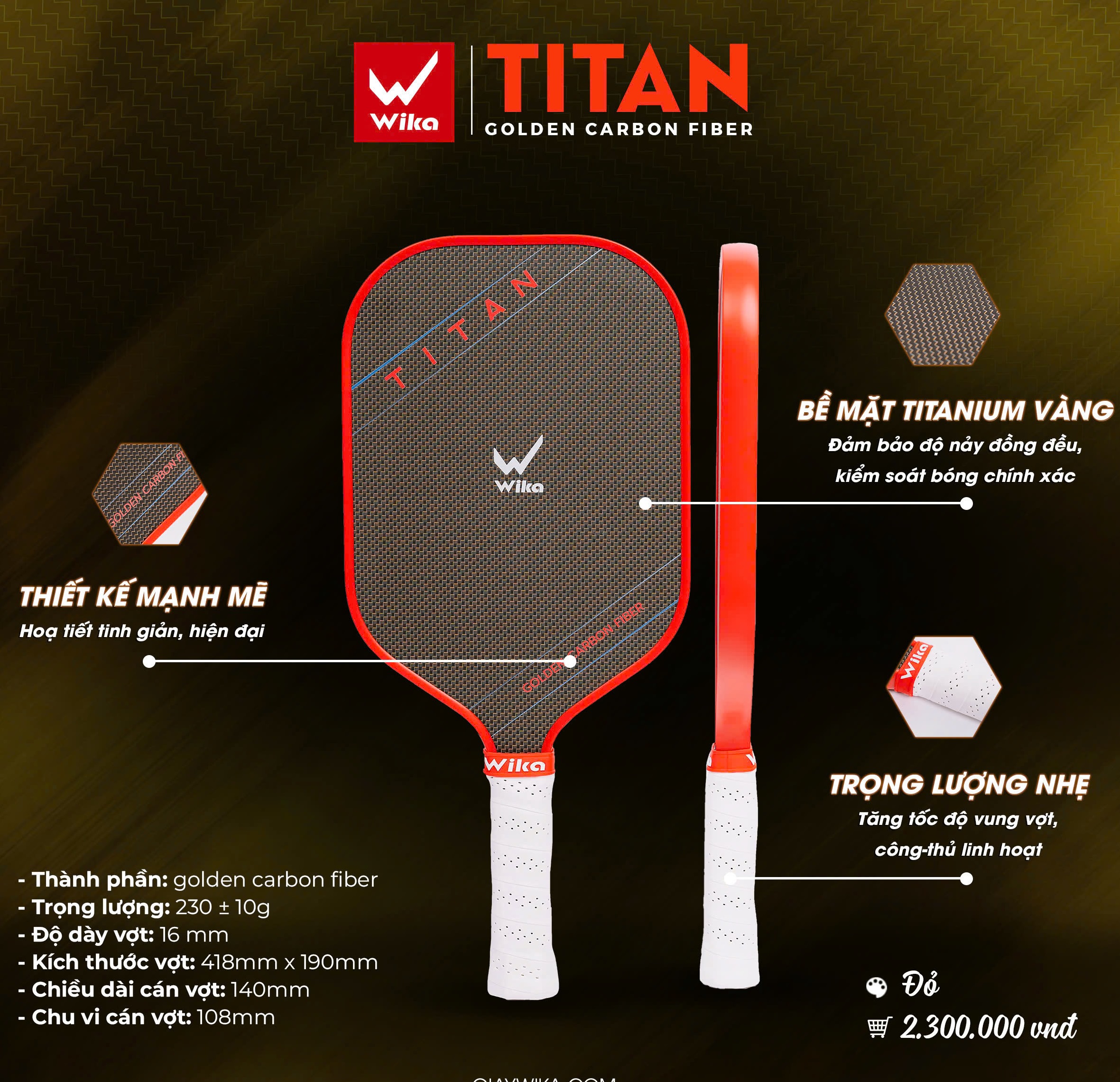 WI-KA TITAN | CỖ MÁY "SĂN ĐIỂM" VỚI MẶT VỢT TITANIUM VÀNG, KIỂM SOÁT BÓNG TỐT, SIÊU BỀN, TỐI ƯU TRỌNG LƯỢNG